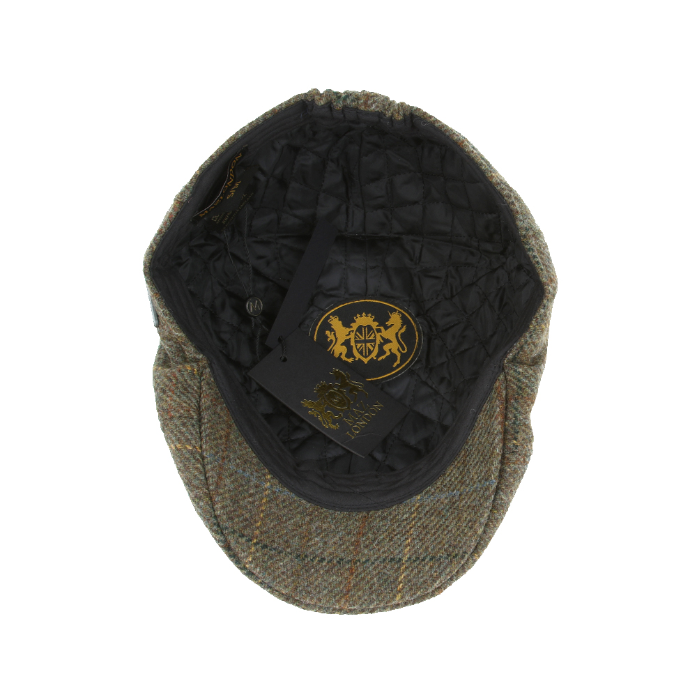 Duckbill Six Panel 100% Wool Window Check Flat Cap – Green