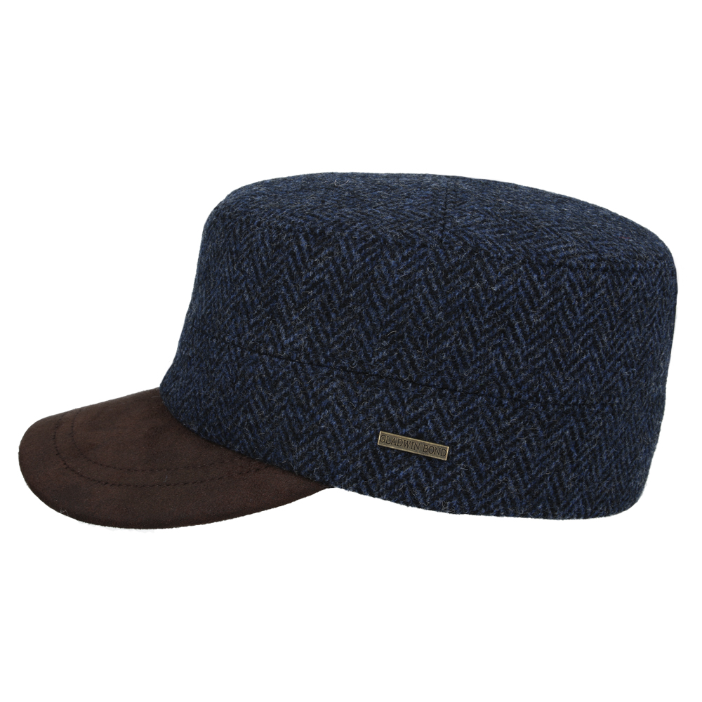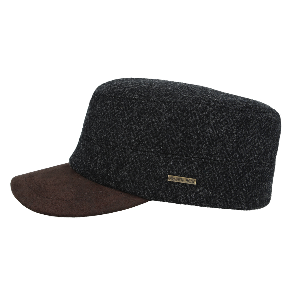 The Gladwin Bond Herringbone Army Cap features a durable Buckle Closure and comfortable Lining. Crafted with 100% Wool fabric, this cap has a classic Army Shape and a soft Cotton Sweatband for all-day wear. The interior is lined with 100% Cotton and has an unstructured Front Panel and a pre-curved Visor. Perfect for any season.