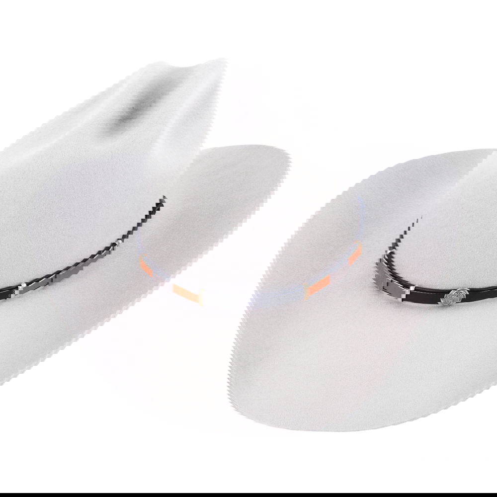 The style cattleman crown mixed with the diamond stud accents on the leather hat band create the