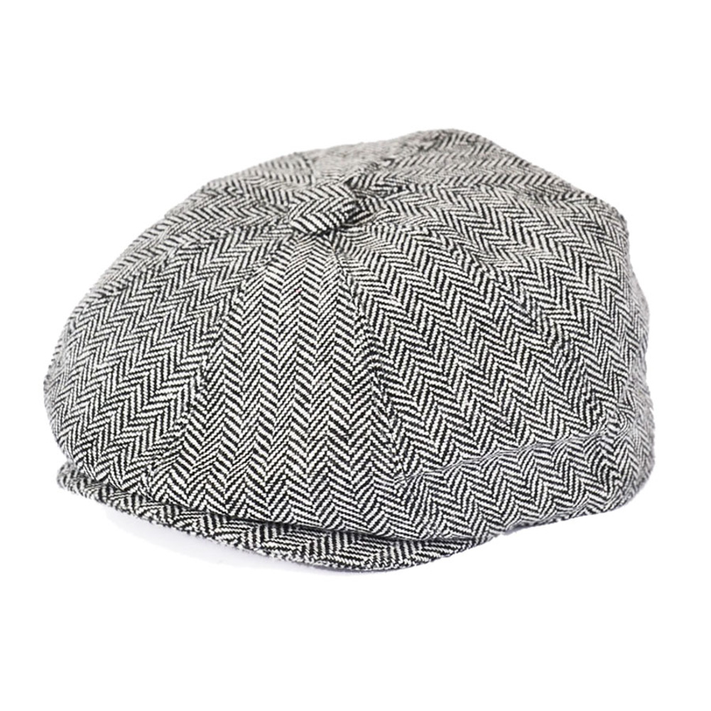 BLACK AND WHITE HERRINGBONE NEWSBOY CAP