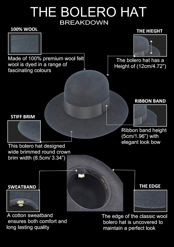 Maz Wool Bolero Stiff Flat Brim Round Crown Hat in Single Sizes