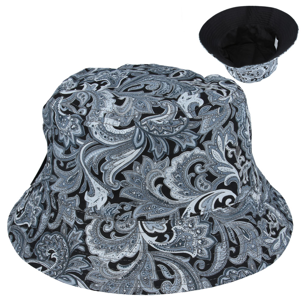 Carbon212 New Reversible Paisley Print Bucket Hat – Grey – Black