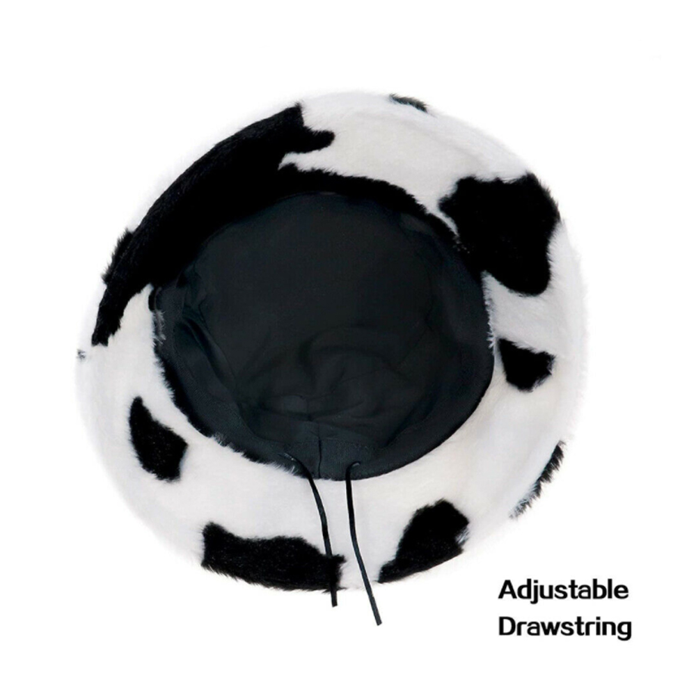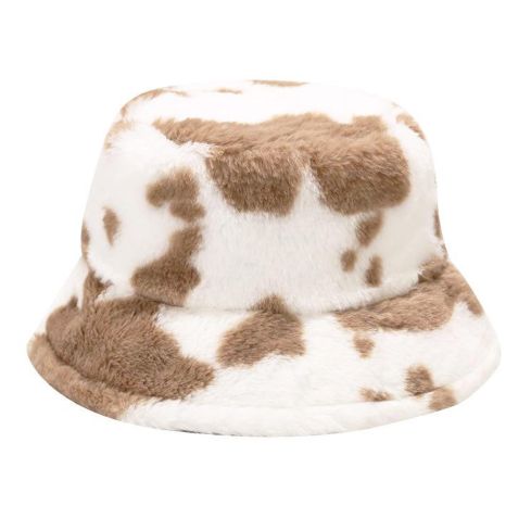 Maz Cow Print Fluffy Faux Fur Bucket Hat