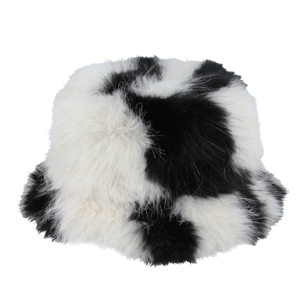 Maz Cow Print Fluffy Faux Fur Bucket Hat