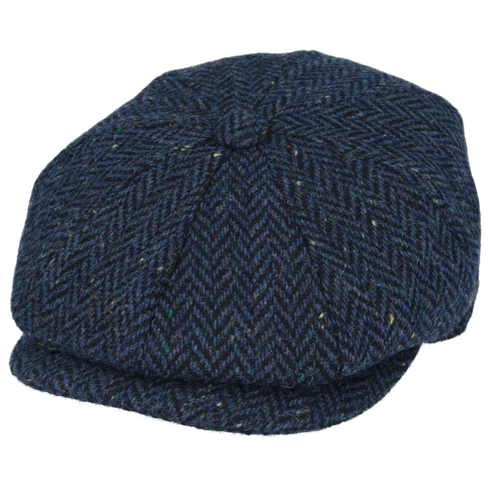 Maz Donegal Tweed Herringbone Patch Newsboy Cap – Navy