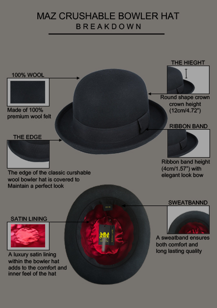 Maz Soft Crushable Wool Bowler Hat