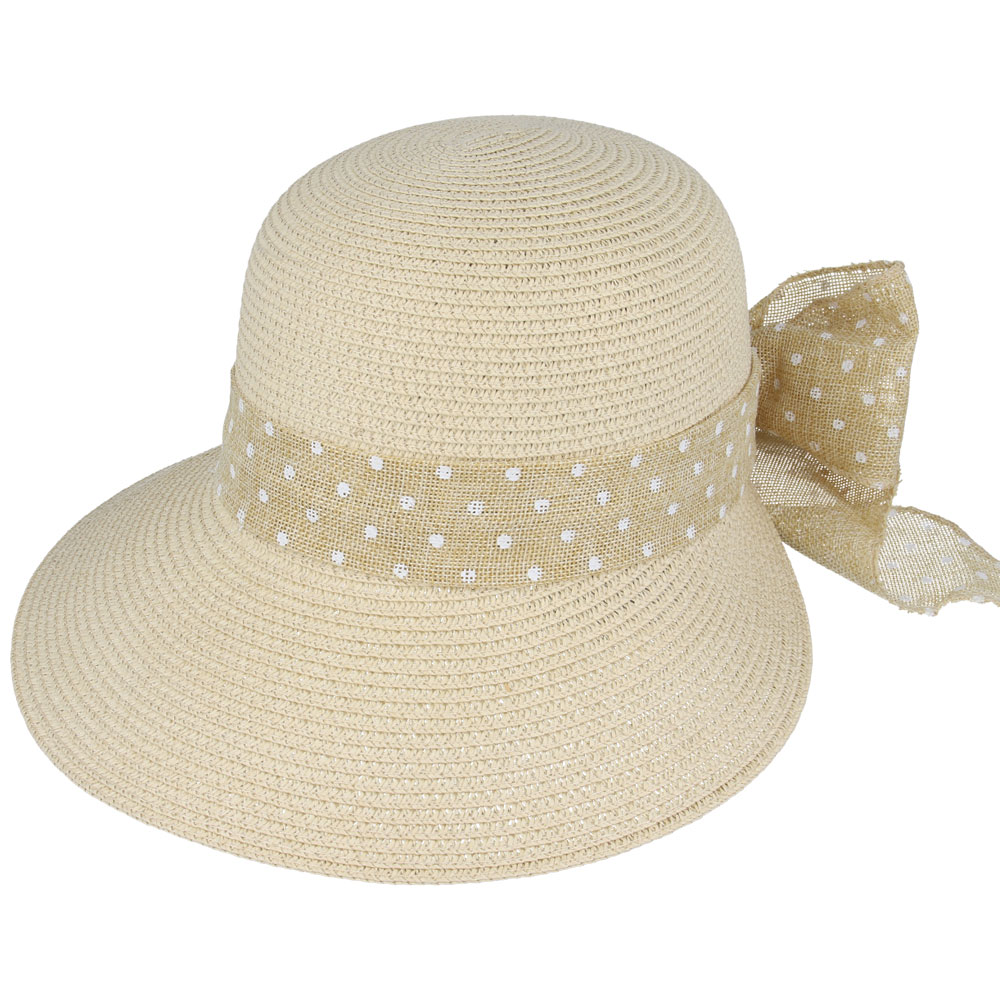 Maz split brim summer cloche hat with bow at the back