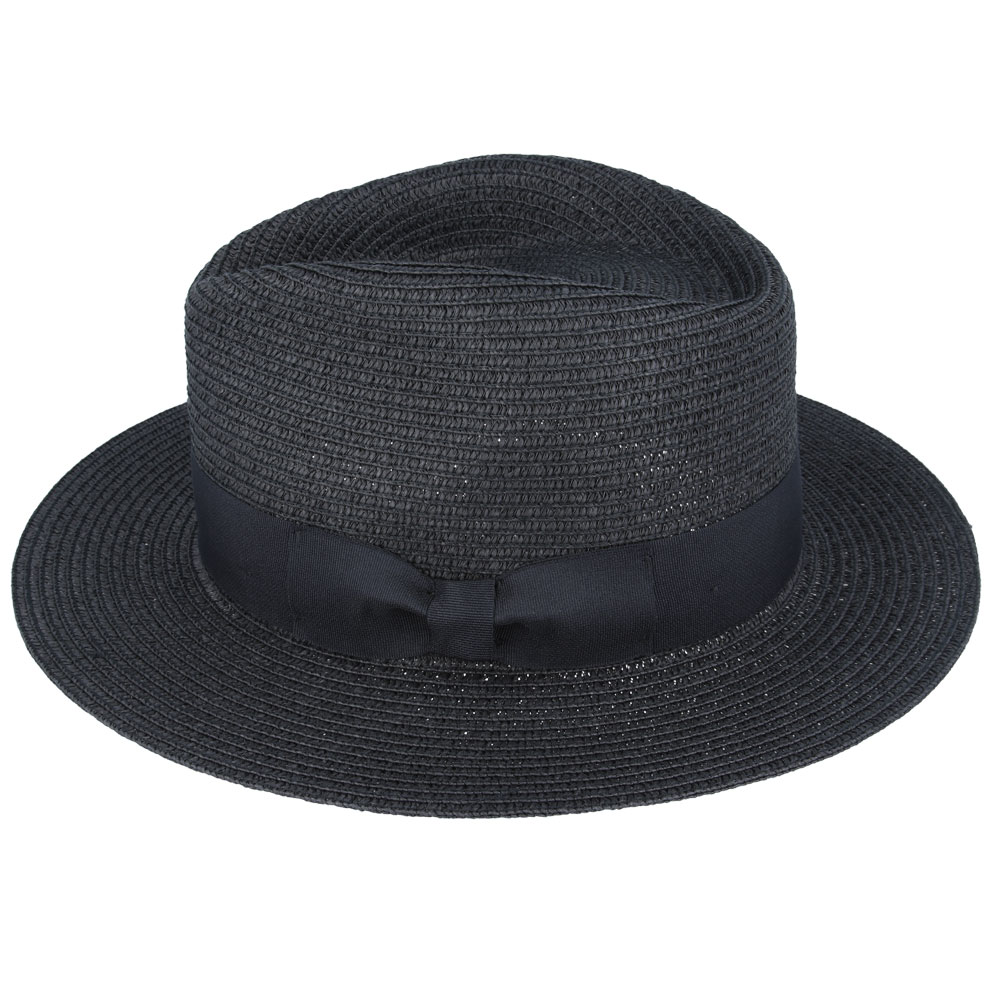 Summer Paper Straw Fedora Hat – Black