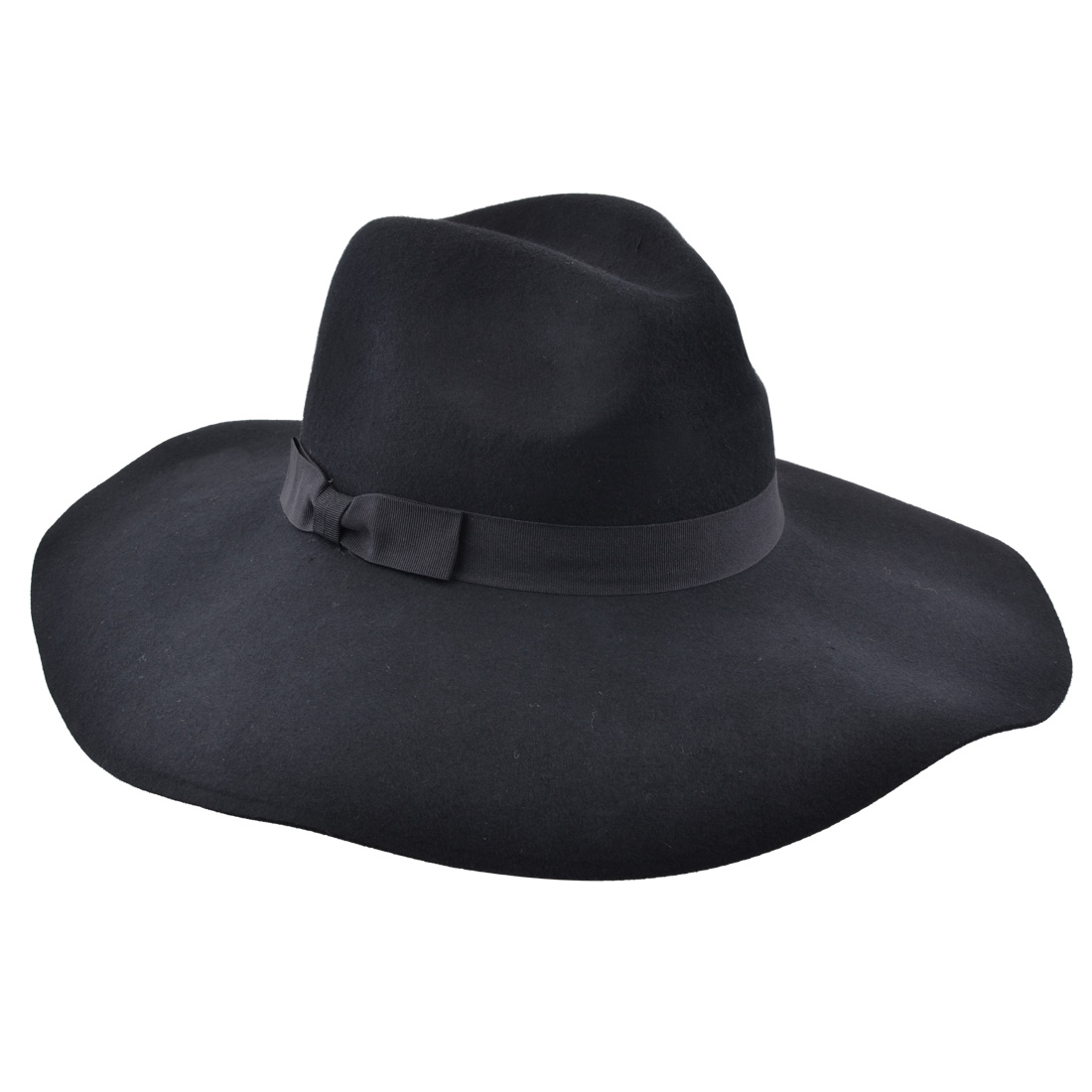 Maz Wide Brim Wool Felt Floppy Hat Black