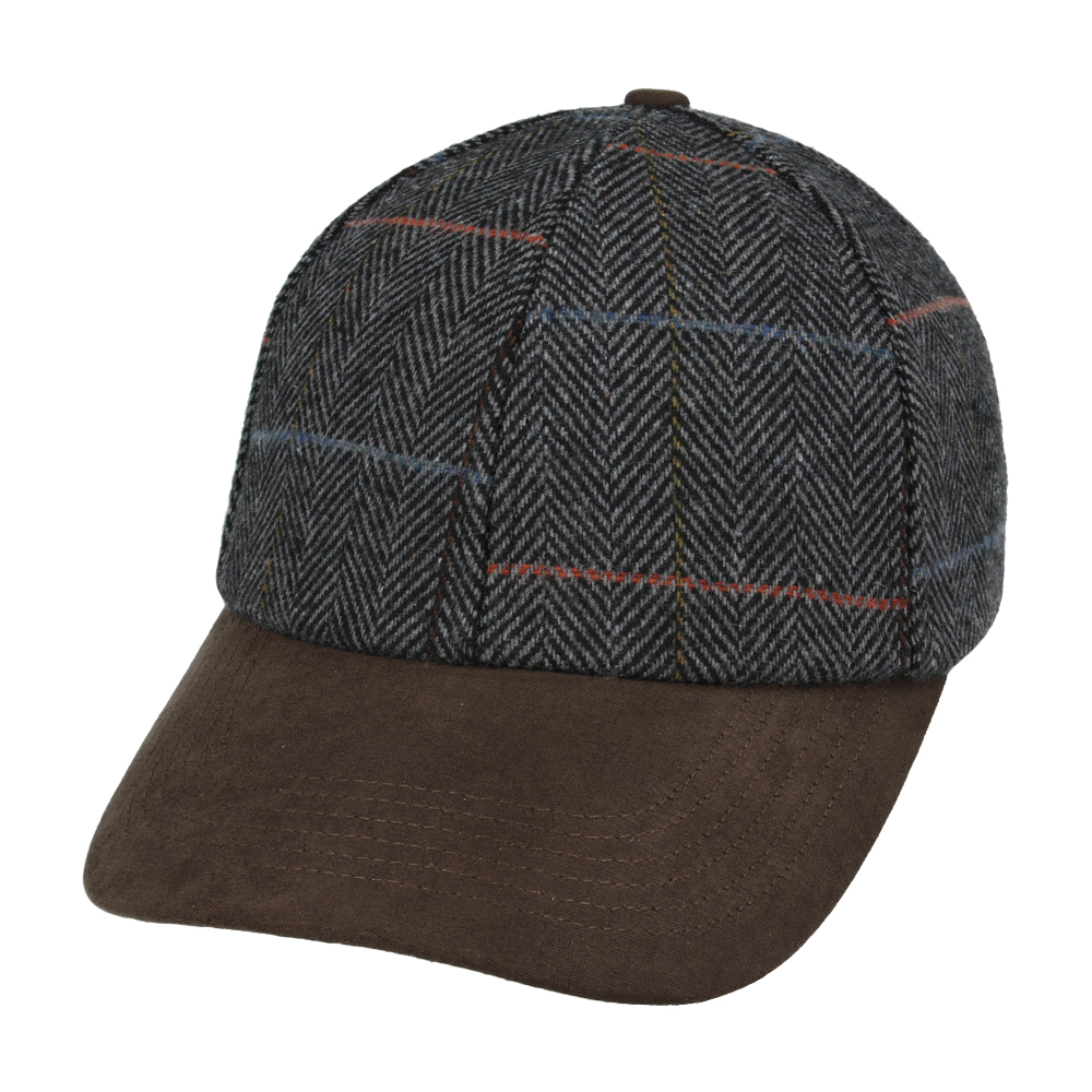 with a six-panel design made from a high-quality wool mix tweed. The adjustable