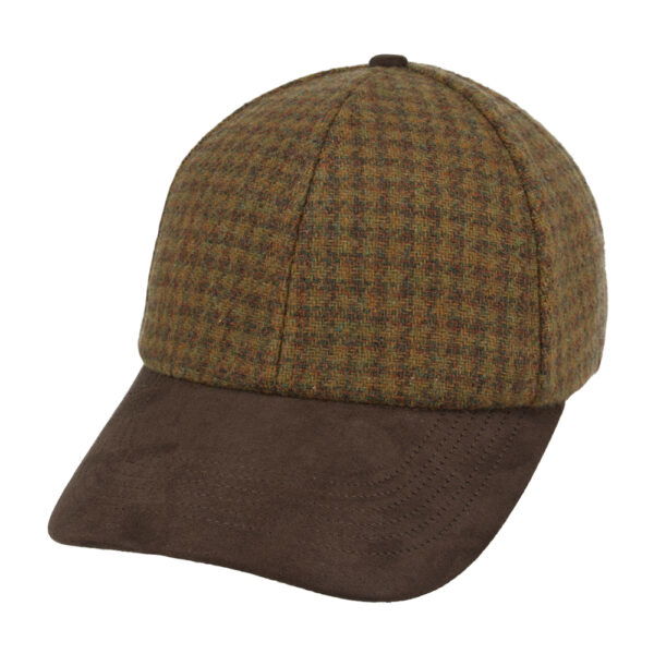 Checked Tweed With Suede Peak Baseball Cap – Green