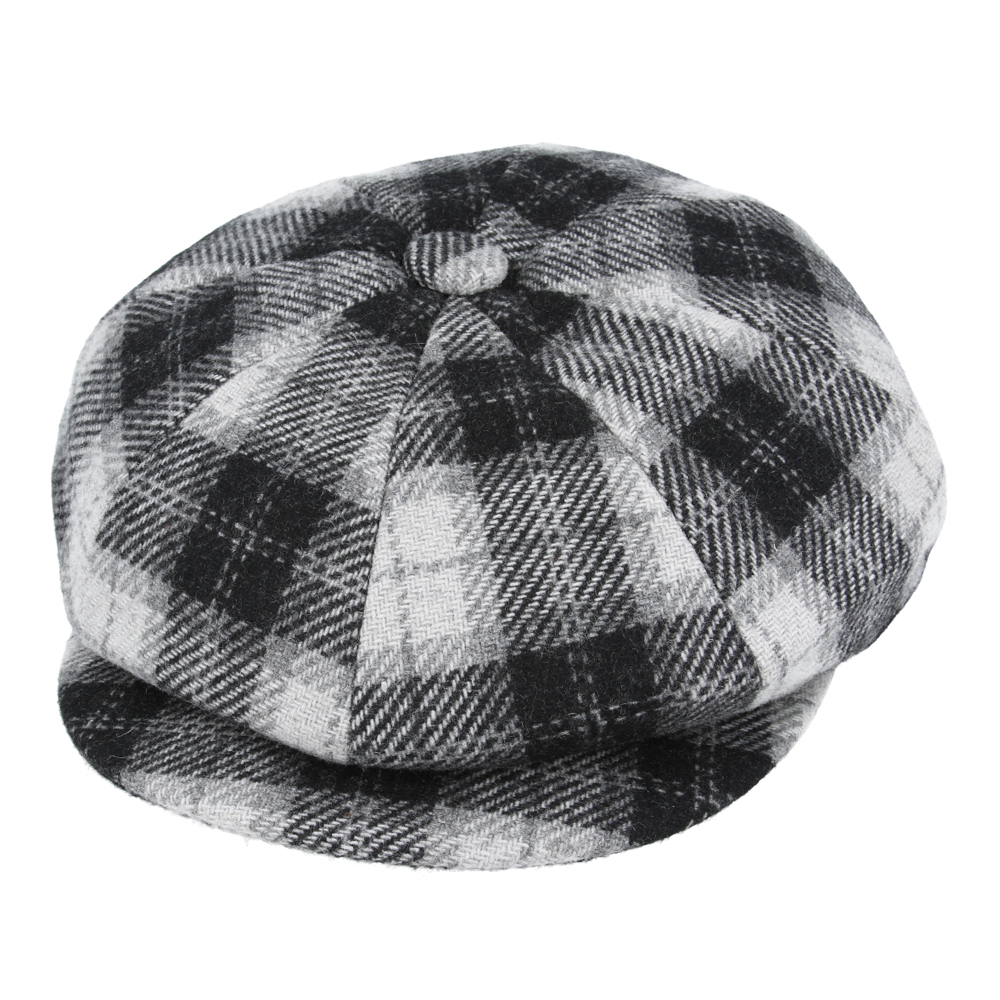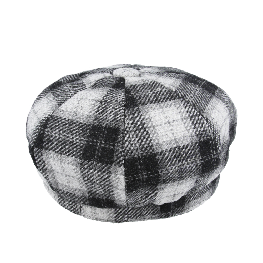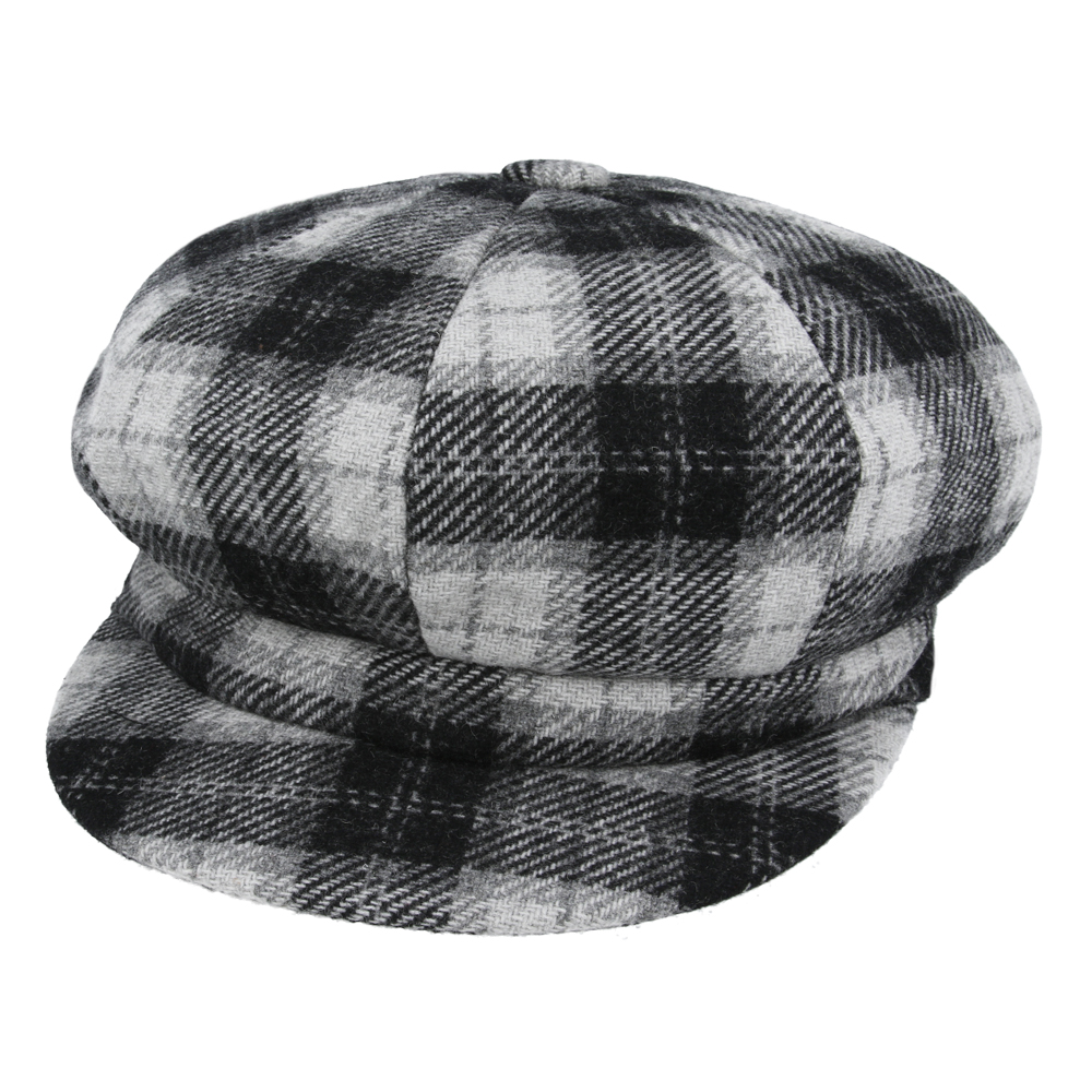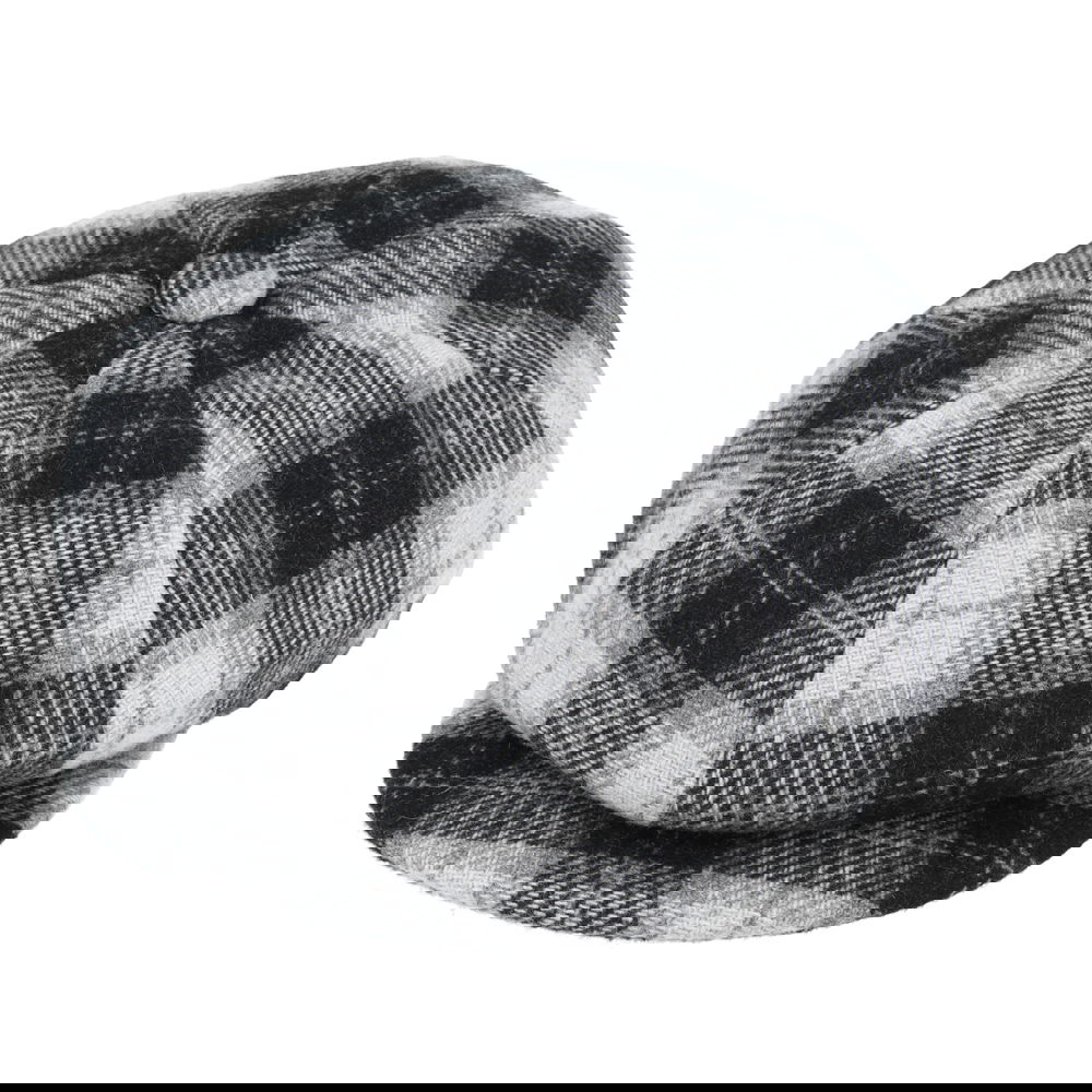 Women’s Tartan Checked Baker boy Eight Panel Cap – Black/White