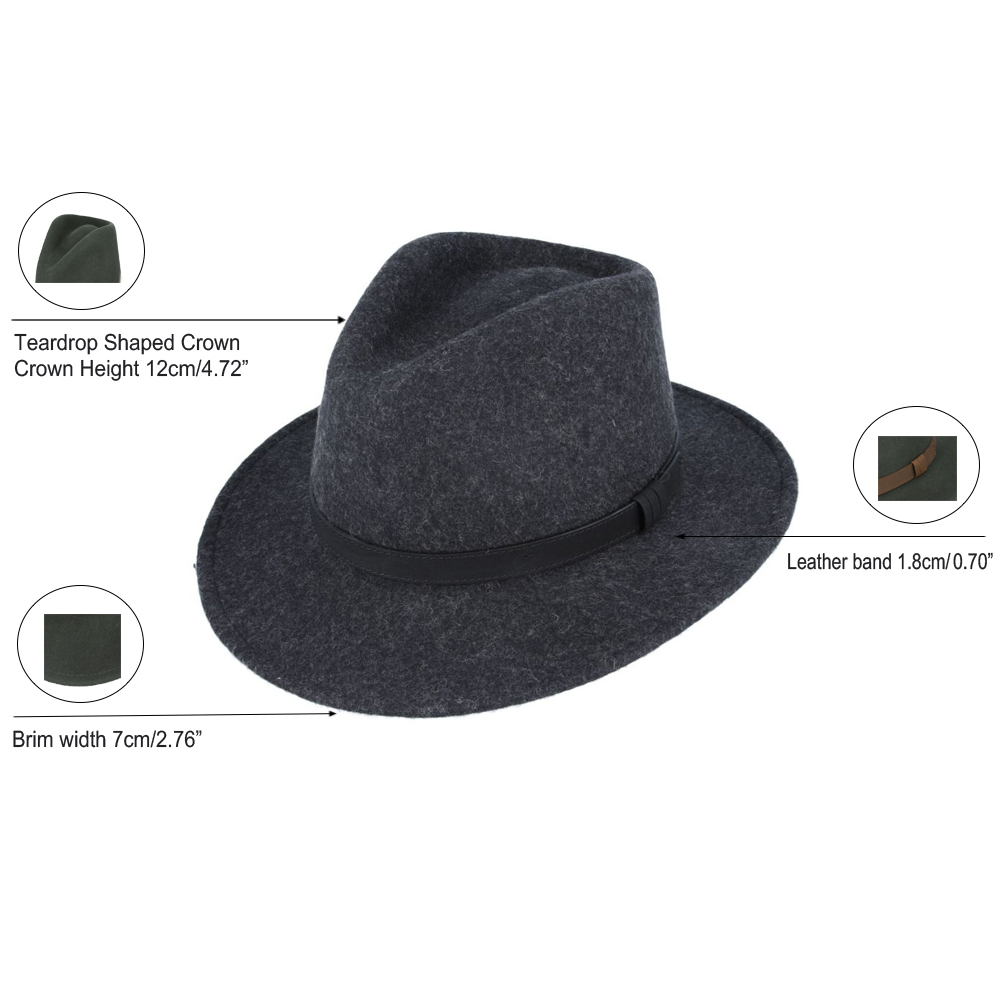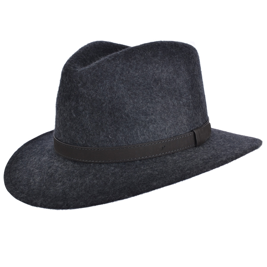 Maz Wool Fedora Hat With Leather Band – Mix Charcoal