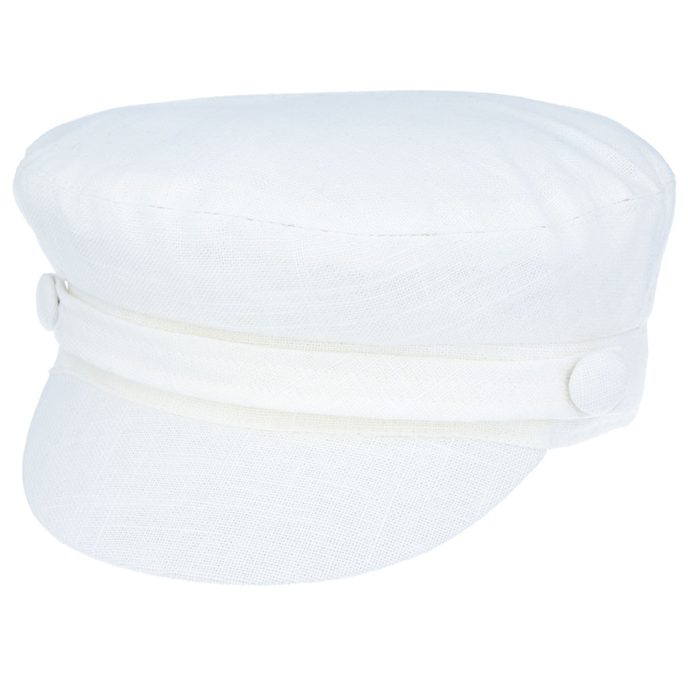 G&H Linen Summer Breton Fiddler Caps – White