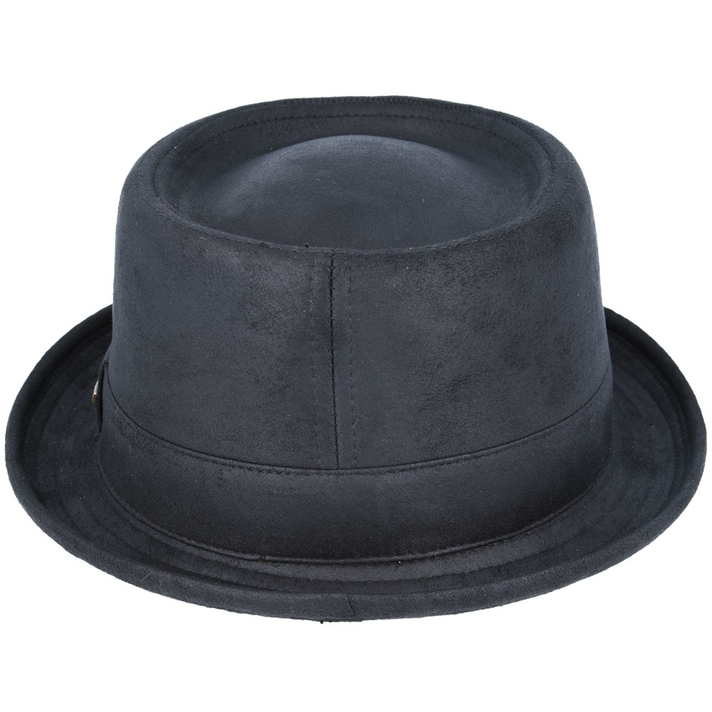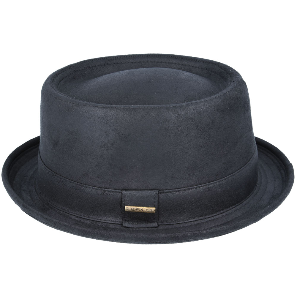Gladwin Bond Leather Look Pork Pie Hat – Black