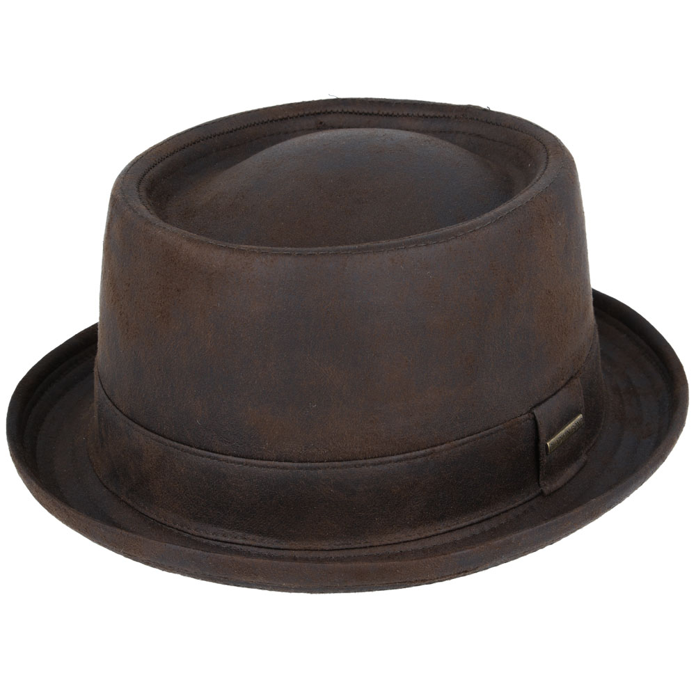 Gladwin Bond Leather Look Pork Pie Hat – Brown