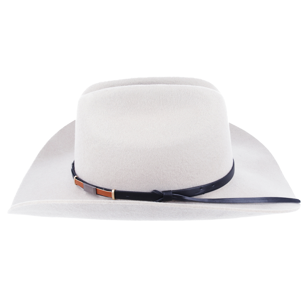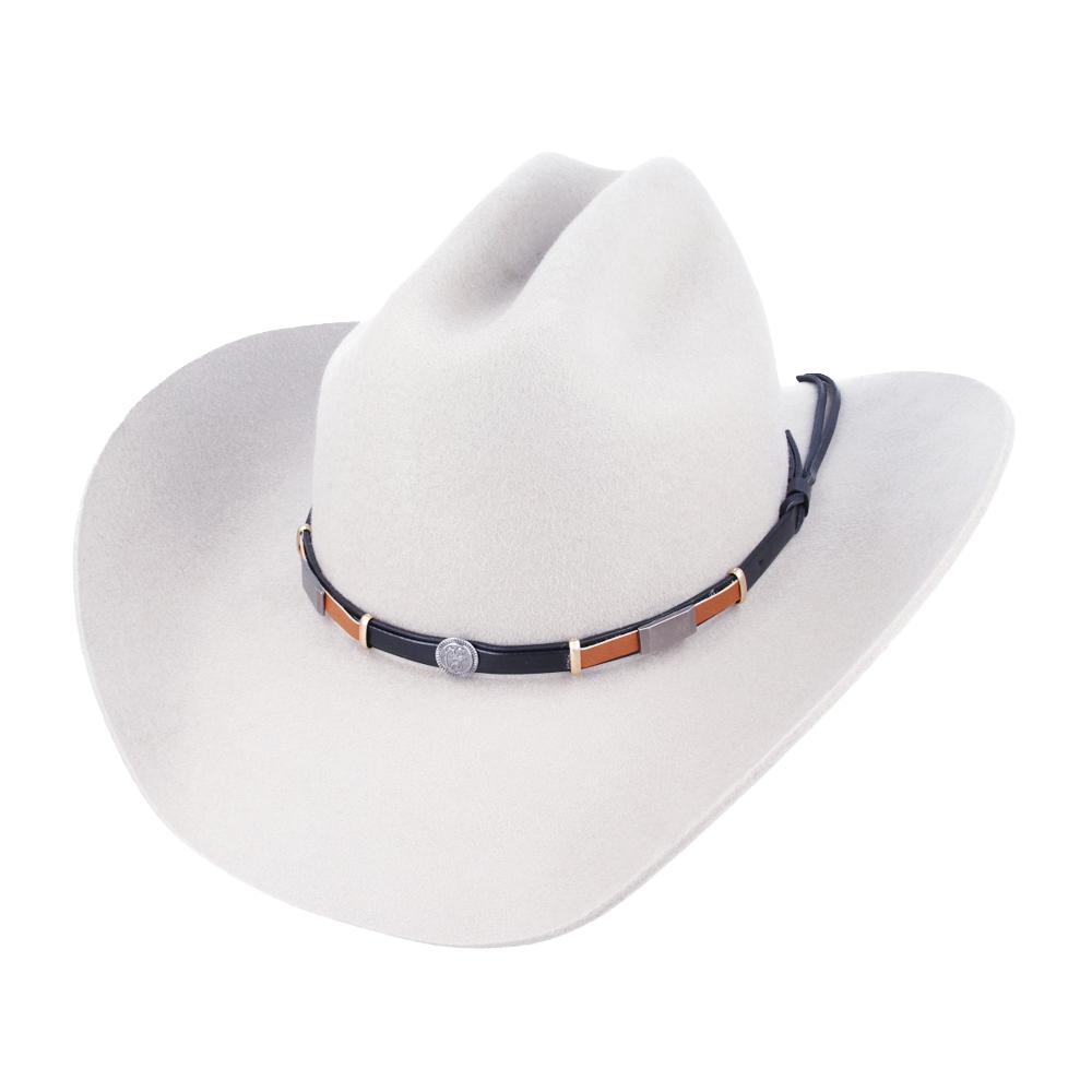 The style cattleman crown mixed with the diamond stud accents on the leather hat band create the