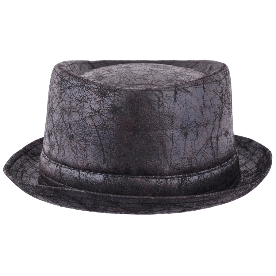 Cracked Leather Look Distressed Vintage Pork pie Hat – Black