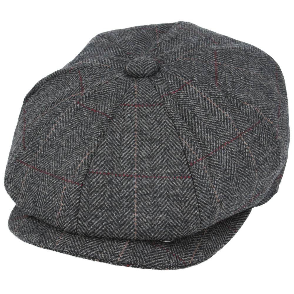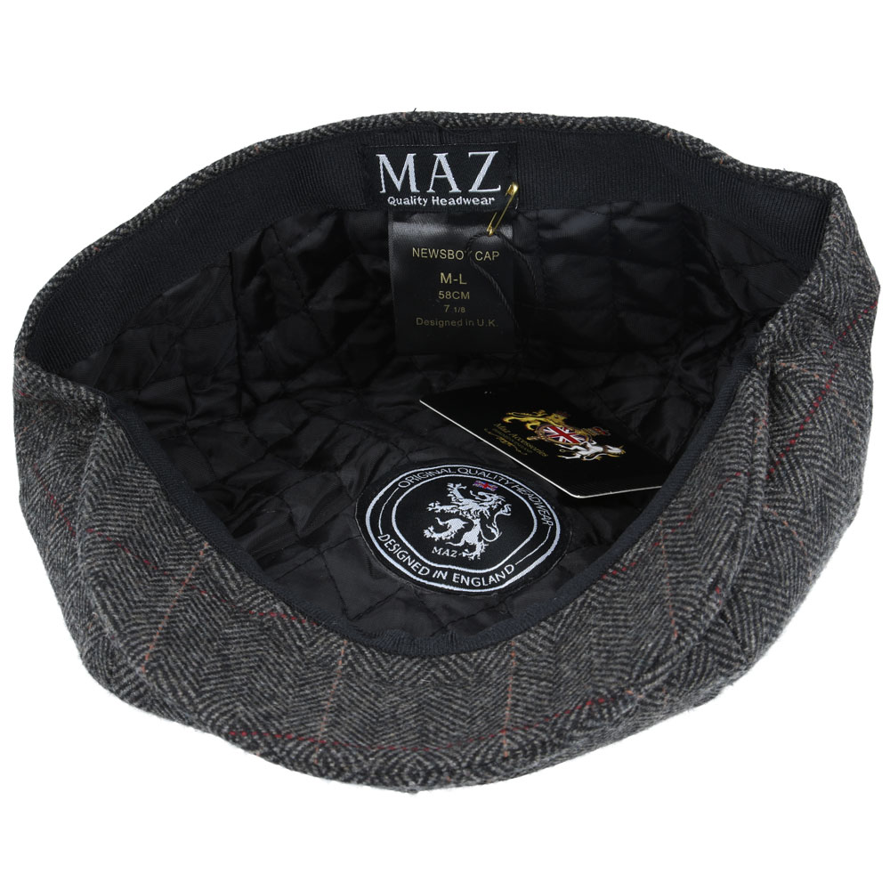 Maz Check Herringbone 8 Panel Newsboy Cap – Dark-Grey
