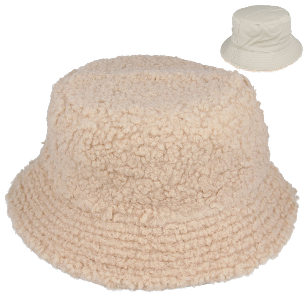 Carbon212 Reversible Fluffy Faux Fur Bucket Hat – Beige