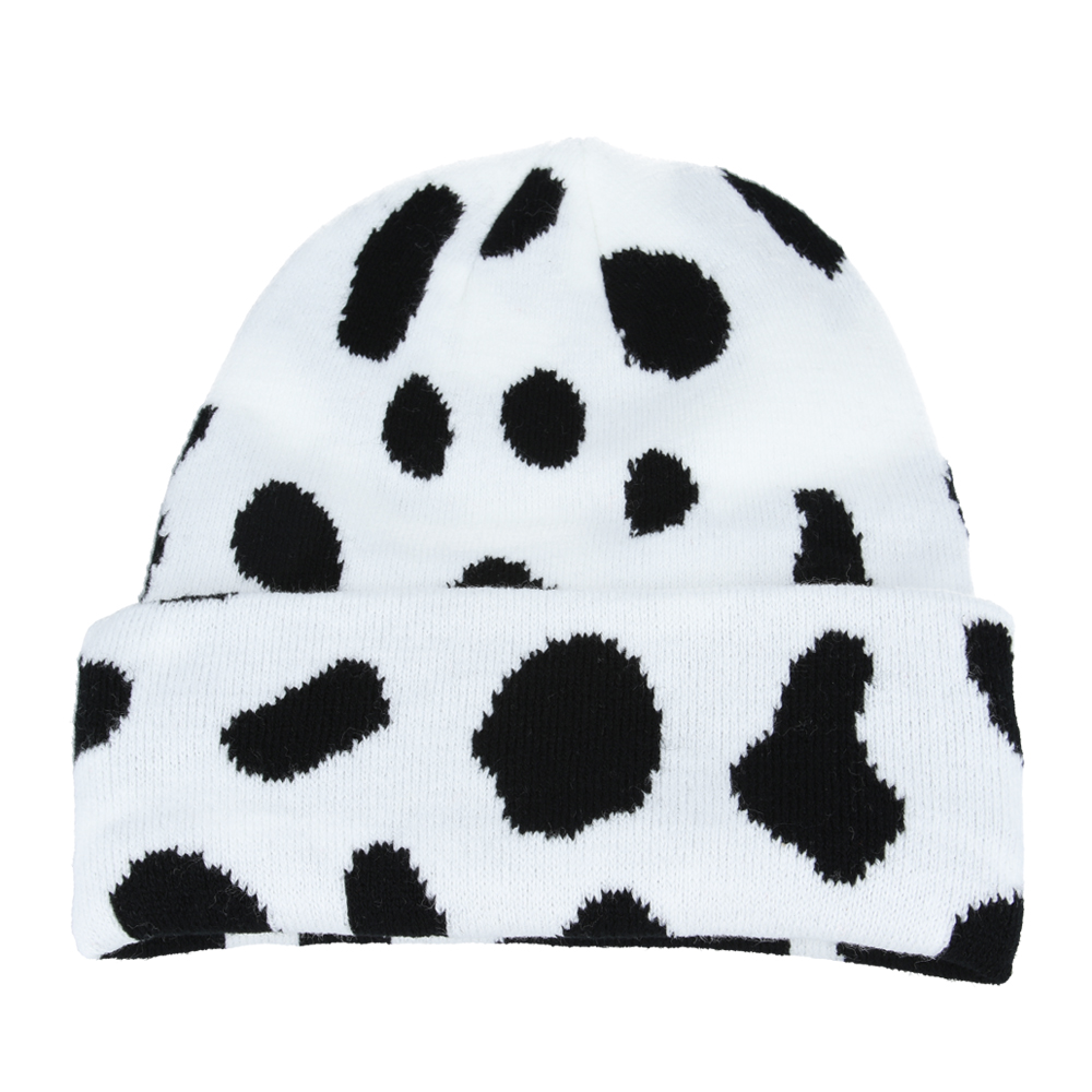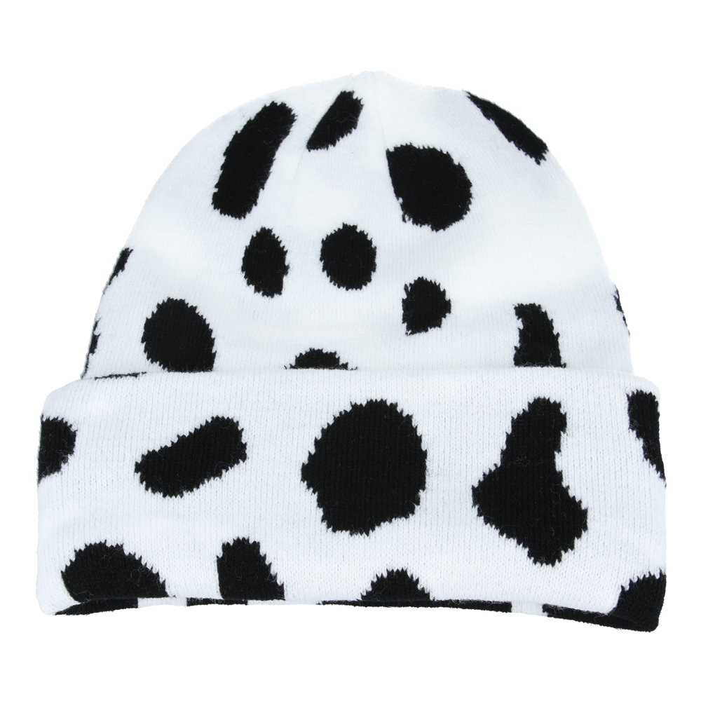 Maz Cow Print Knit Trawler Beanie – White