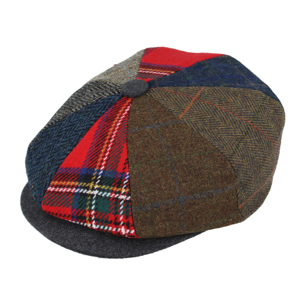 Maz Donegal Tweed Herringbone Tartan Patch Newsboy Cap – Multi Colour