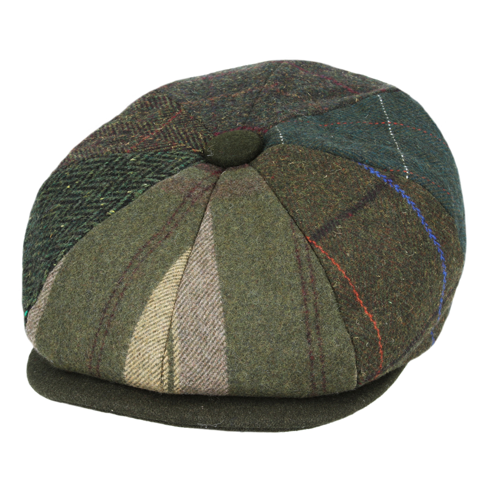 Maz Donegal Tweed Herringbone Tartan Patch Newsboy Cap – Multi Colour