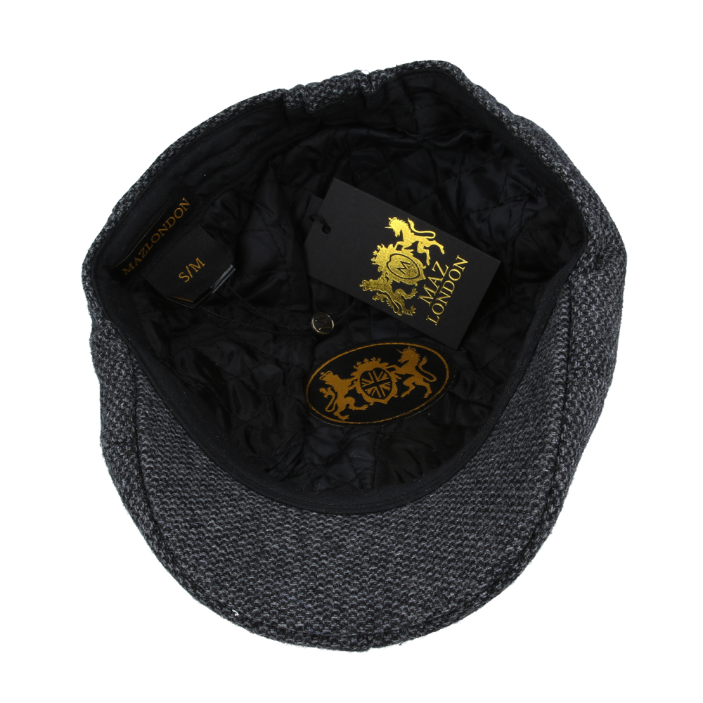 Maz Duckbill Six Panel Wool Tweed Flat Cap – Black