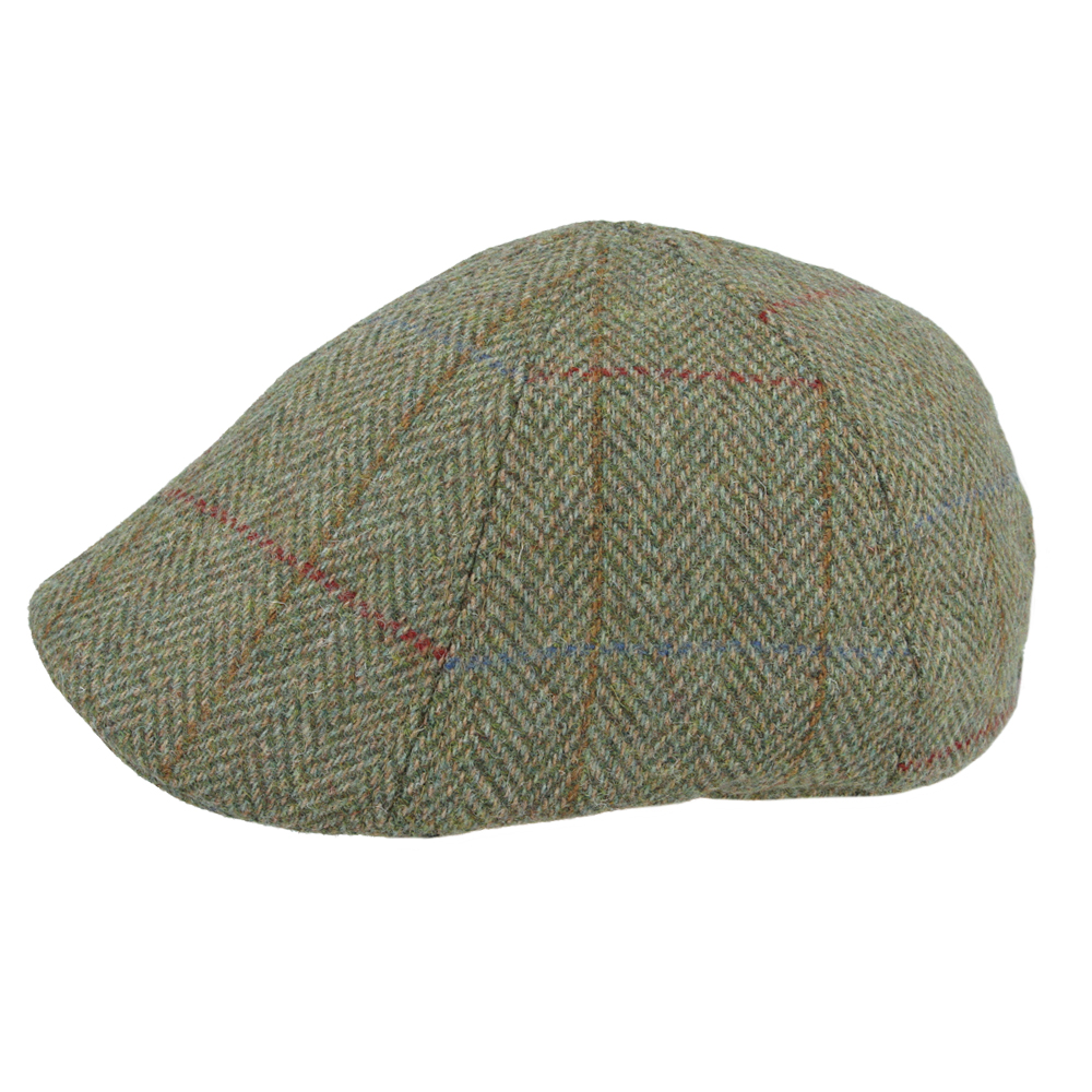Maz Duckbill Six Panel Wool Herringbone Check Tweed Flat Cap