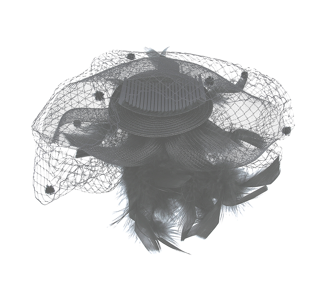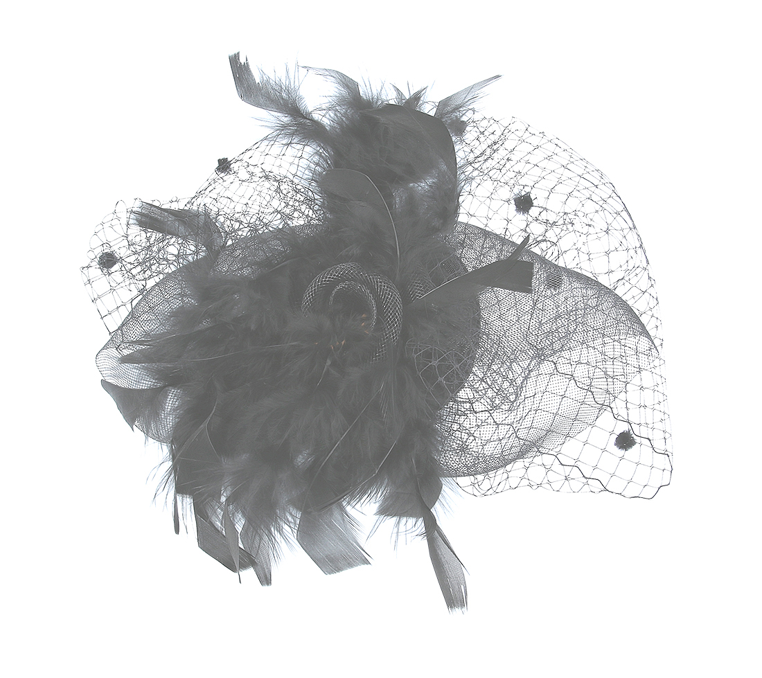 Maz fascinator designed with a structured disc with a sparkly trim, and a beautiful feather flower with faux pearl.