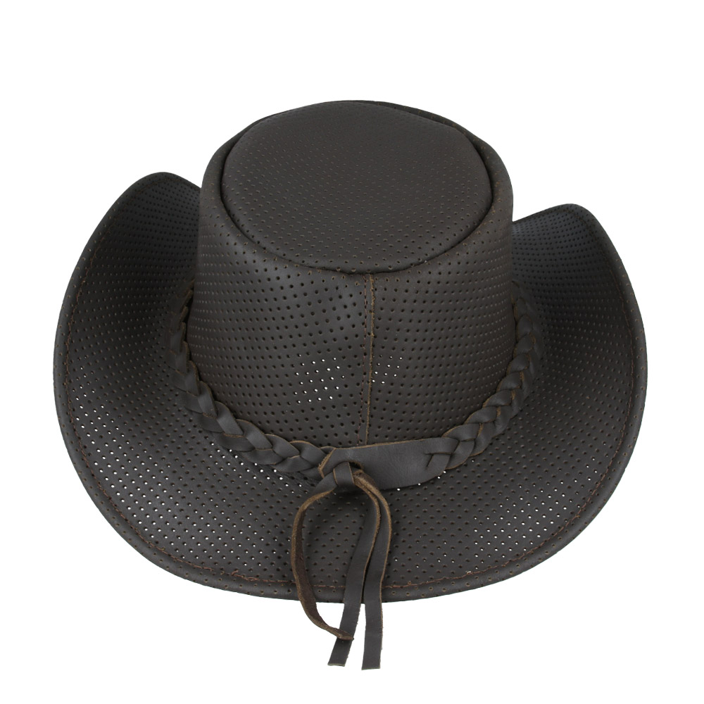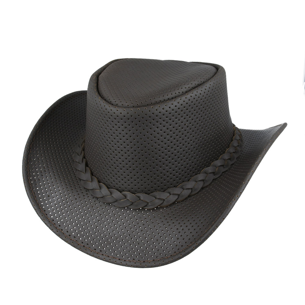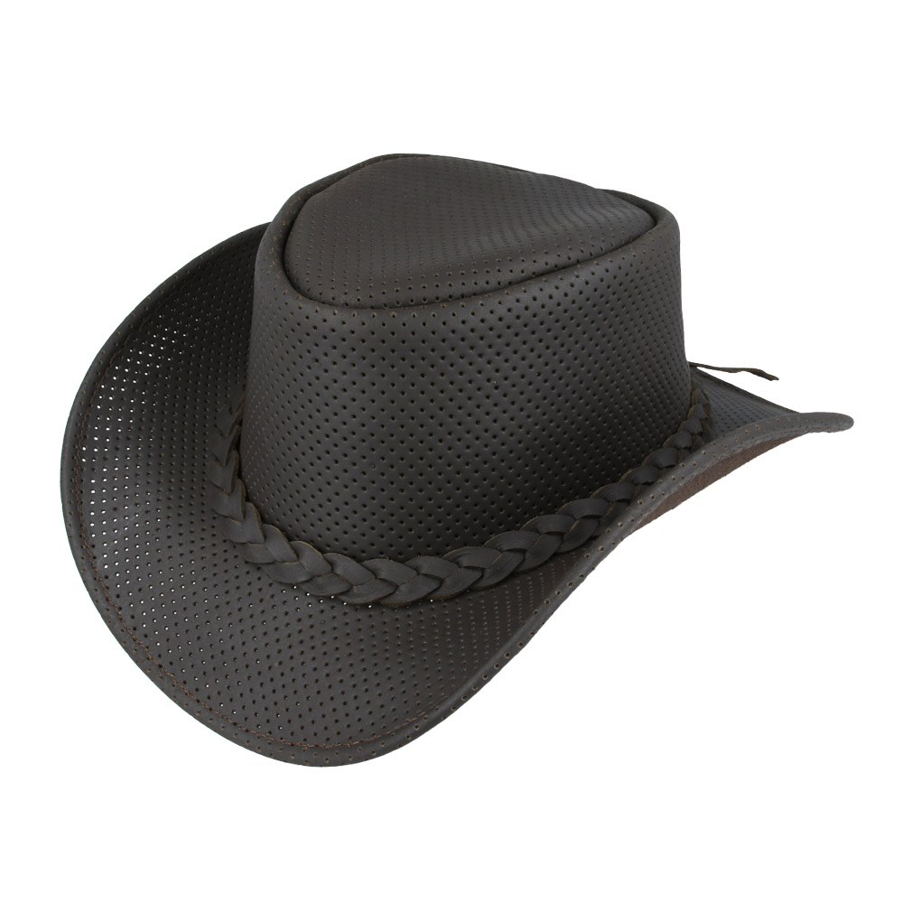 Maz Genuine Leather Mesh Western Outback Aussie Cowboy Hat – Brown