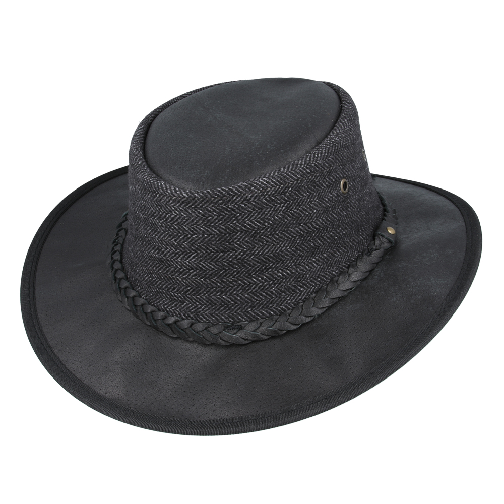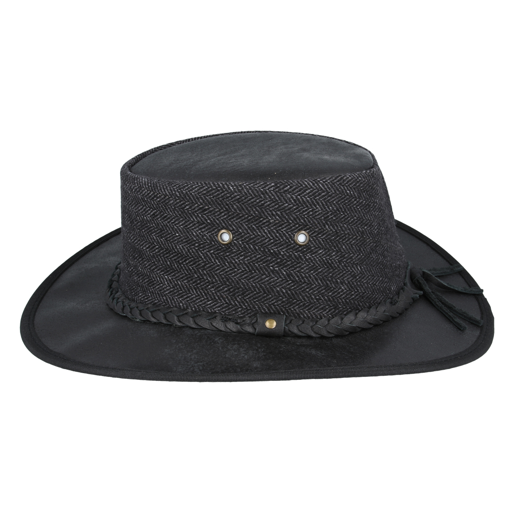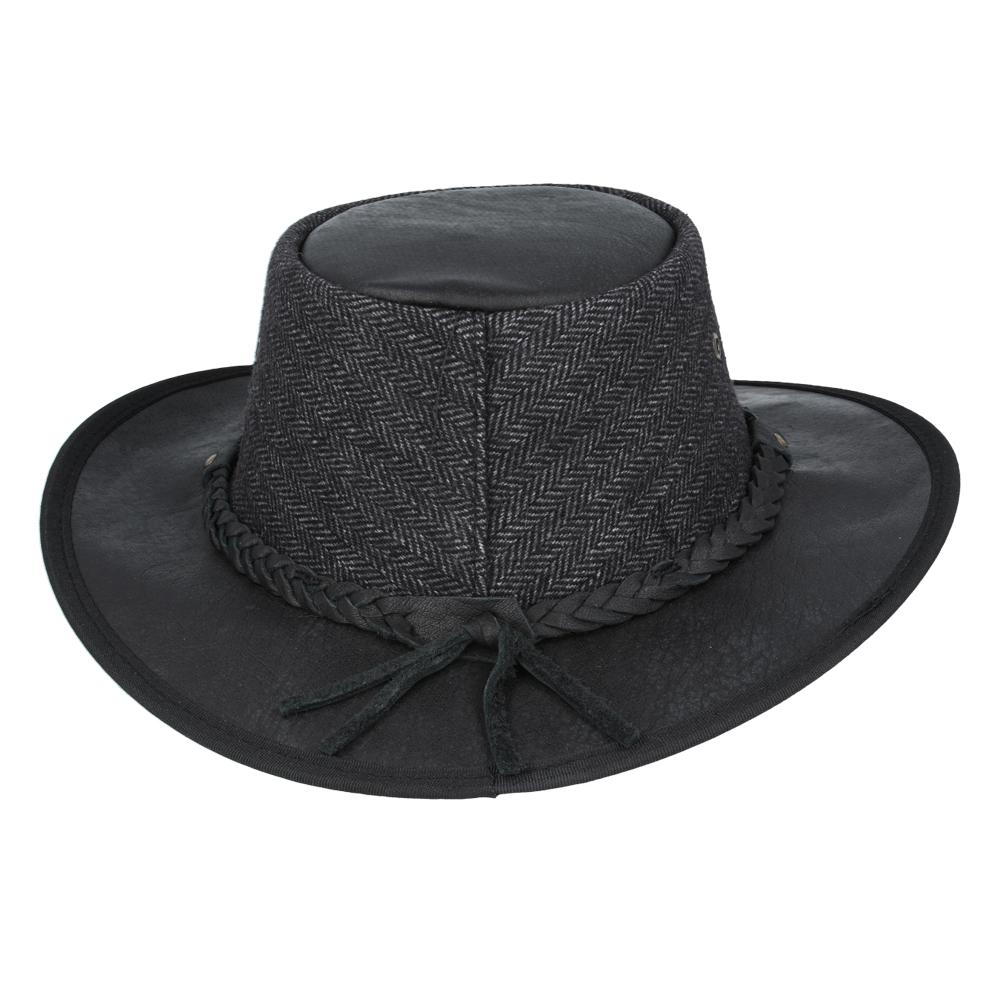 Gladwin Bond Genuine Leather Herringbone Western Outback Aussie Cowboy Hat – Black