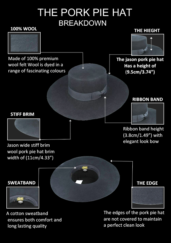 Maz Wide Stiff Brim Wool Pork Pie Hat
