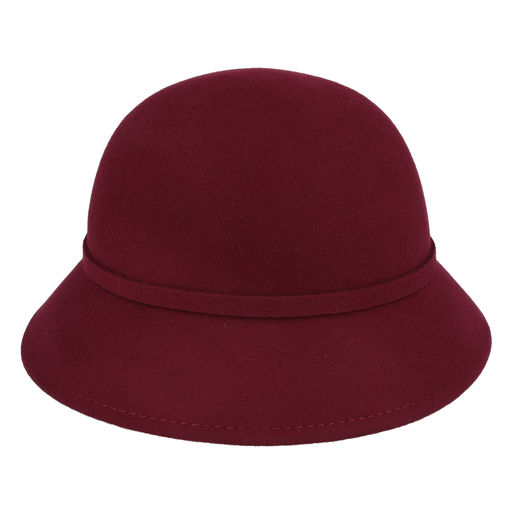 Maz Ladies Chic Vintage Wool Cloche Hat With Strap Bow & belt Around