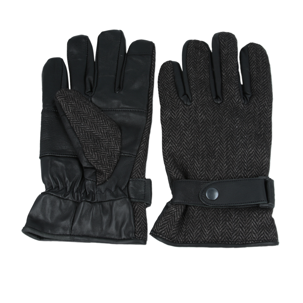 Maz Men’s Genuine Leather & Herringbone Gloves With Touch Screen – Black