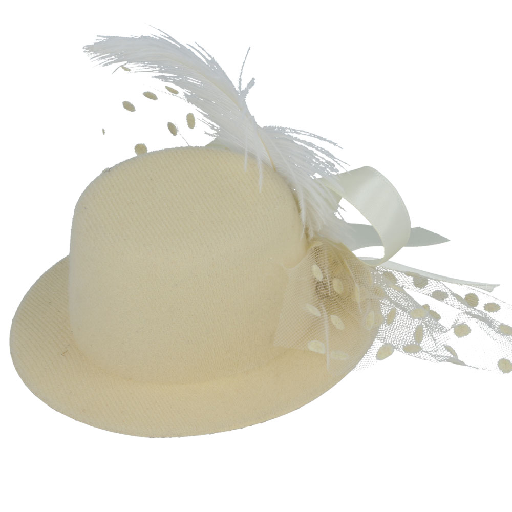 Maz Mini Top Hat Fascinator With Elegant Feather & Bow – Beige