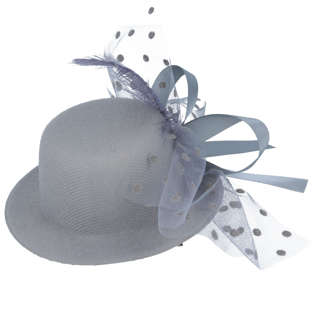 Maz Mini Top Hat Fascinator With Elegant Feather & Diamond – Grey