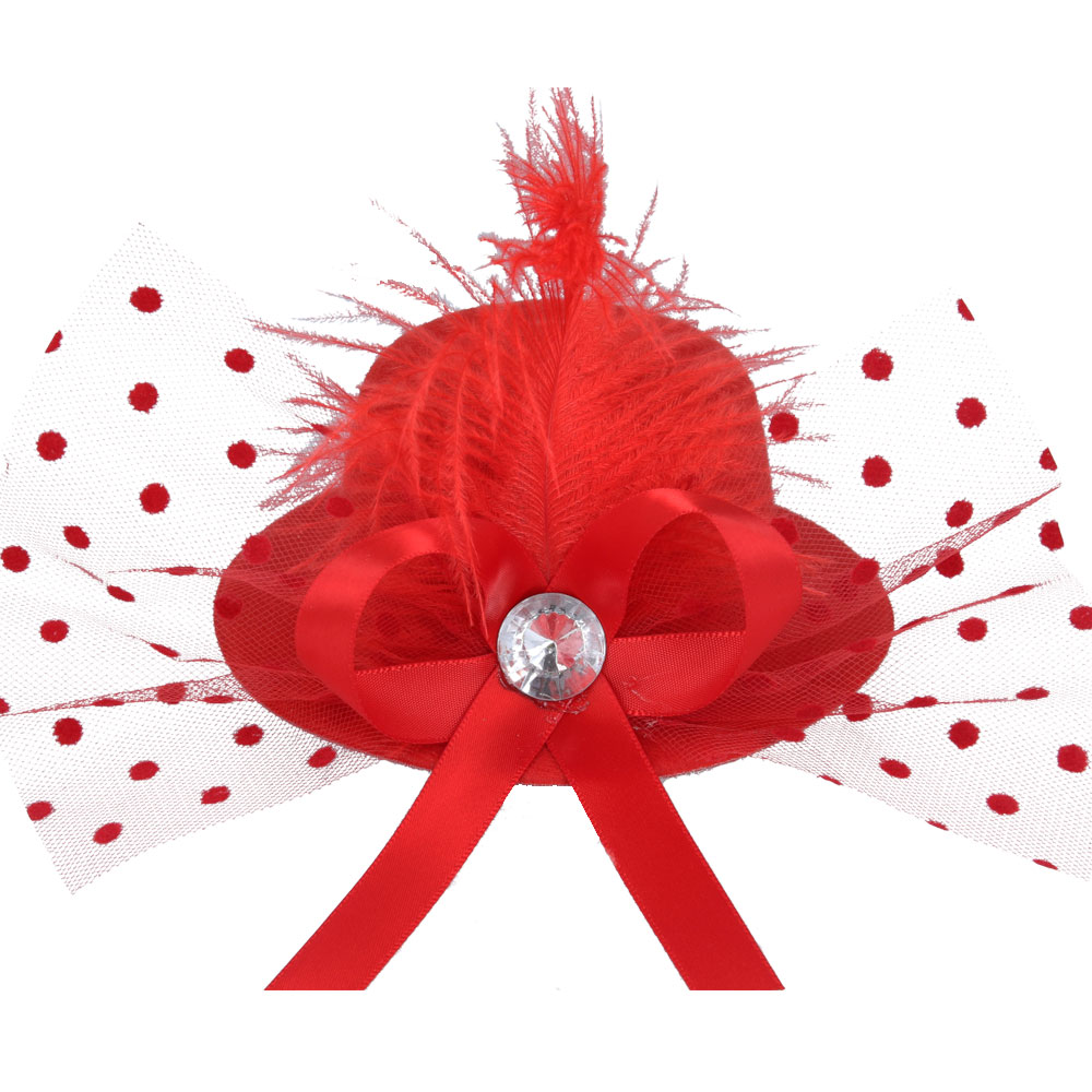Maz classic stylish Back top hat has been complemented by feathers that slightly shimmer when the light catches it. The clip also features polkadot netting and has been finished off with a sparking gem. will add a great finishing touch to your style,