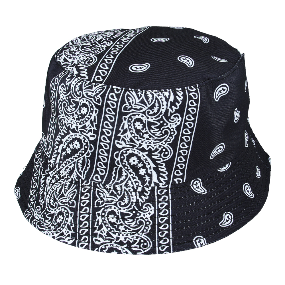 Maz Reversible Paisley Print Pattern Bucket Fisherman Hat – Black