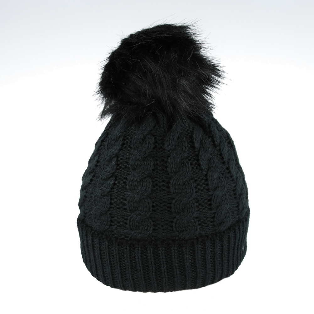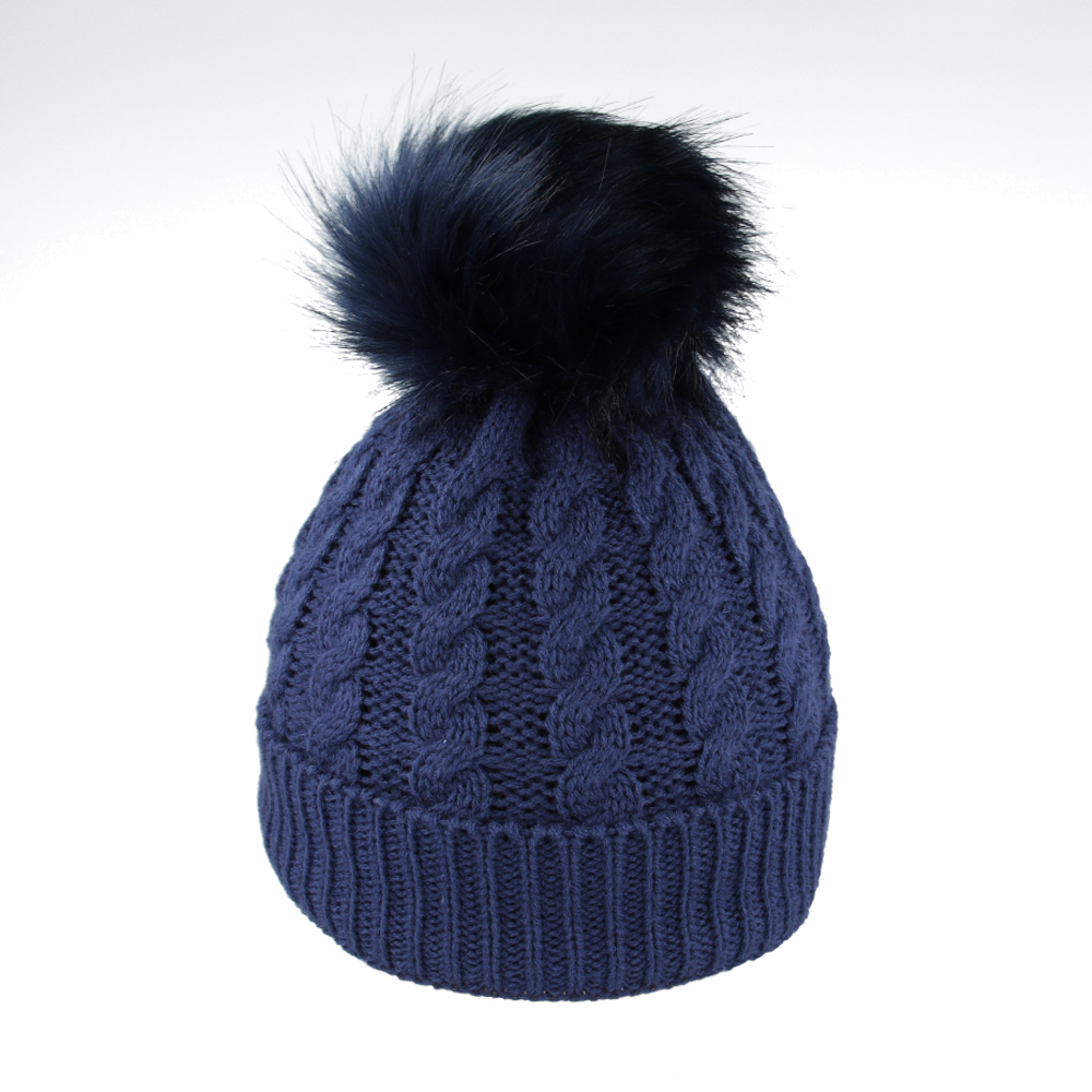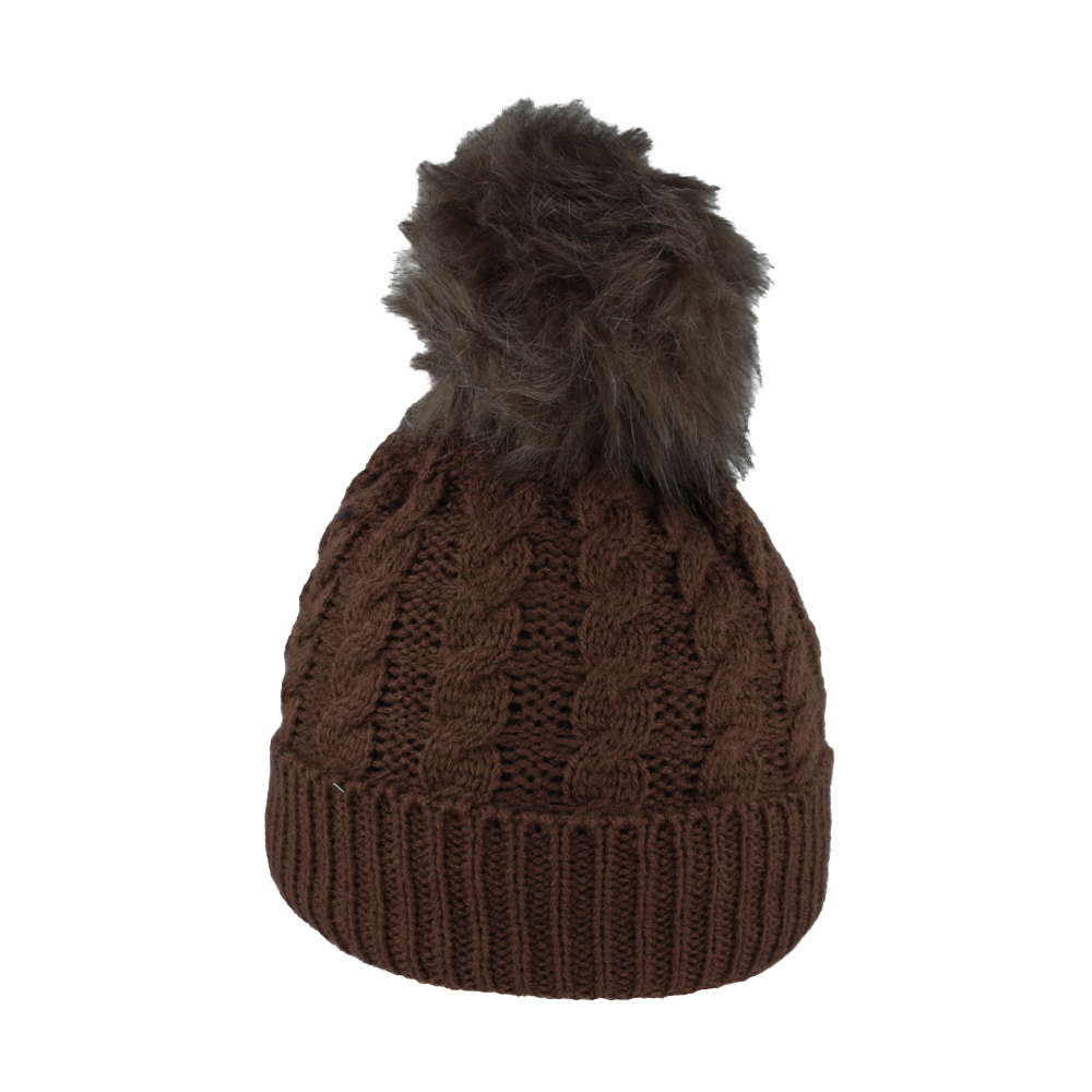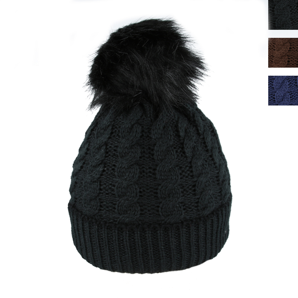 Maz Kids Pom Pom Cable Knitted Beanie With Faux Fur – Multi/colors