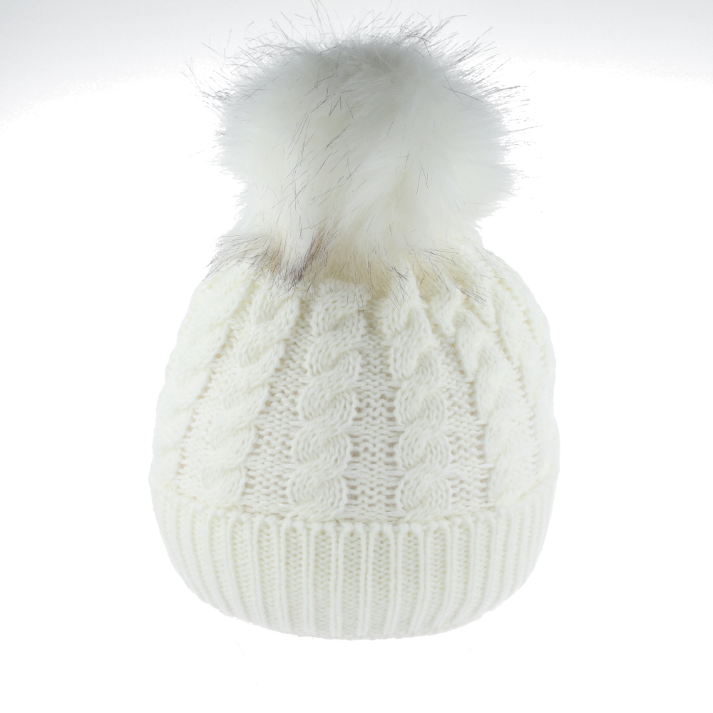 Maz Kids Pom Pom Cable Knitted Beanie With Faux Fur – Multi/colors