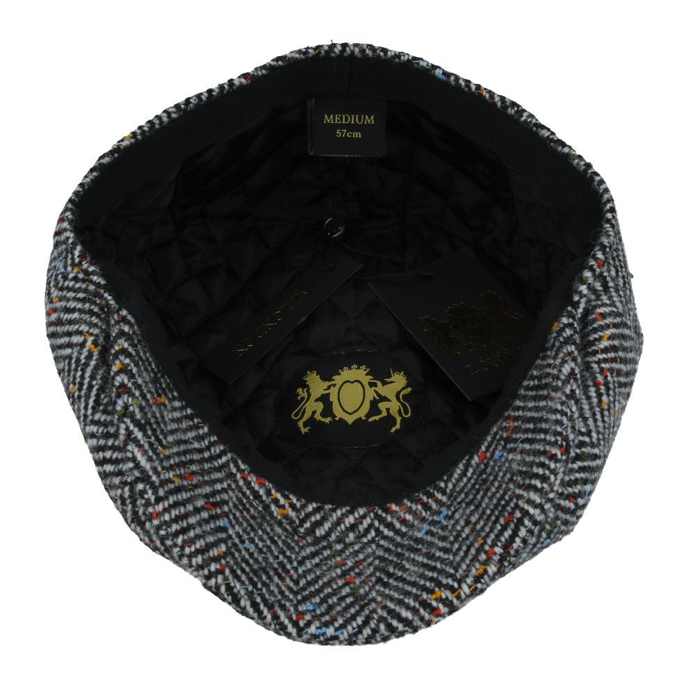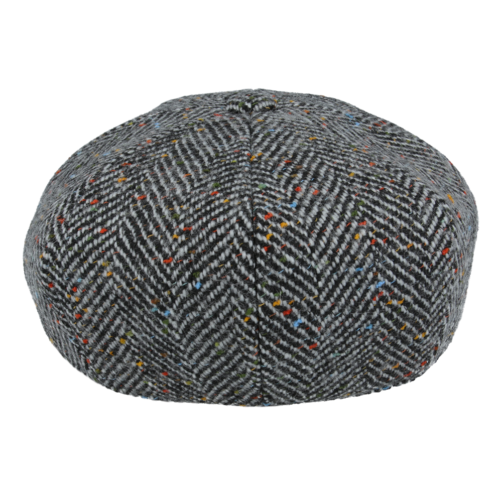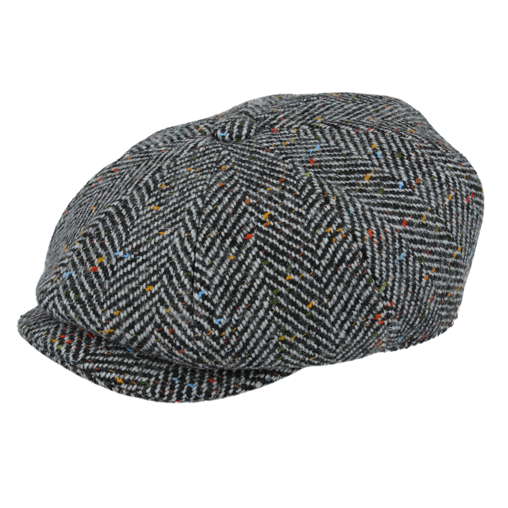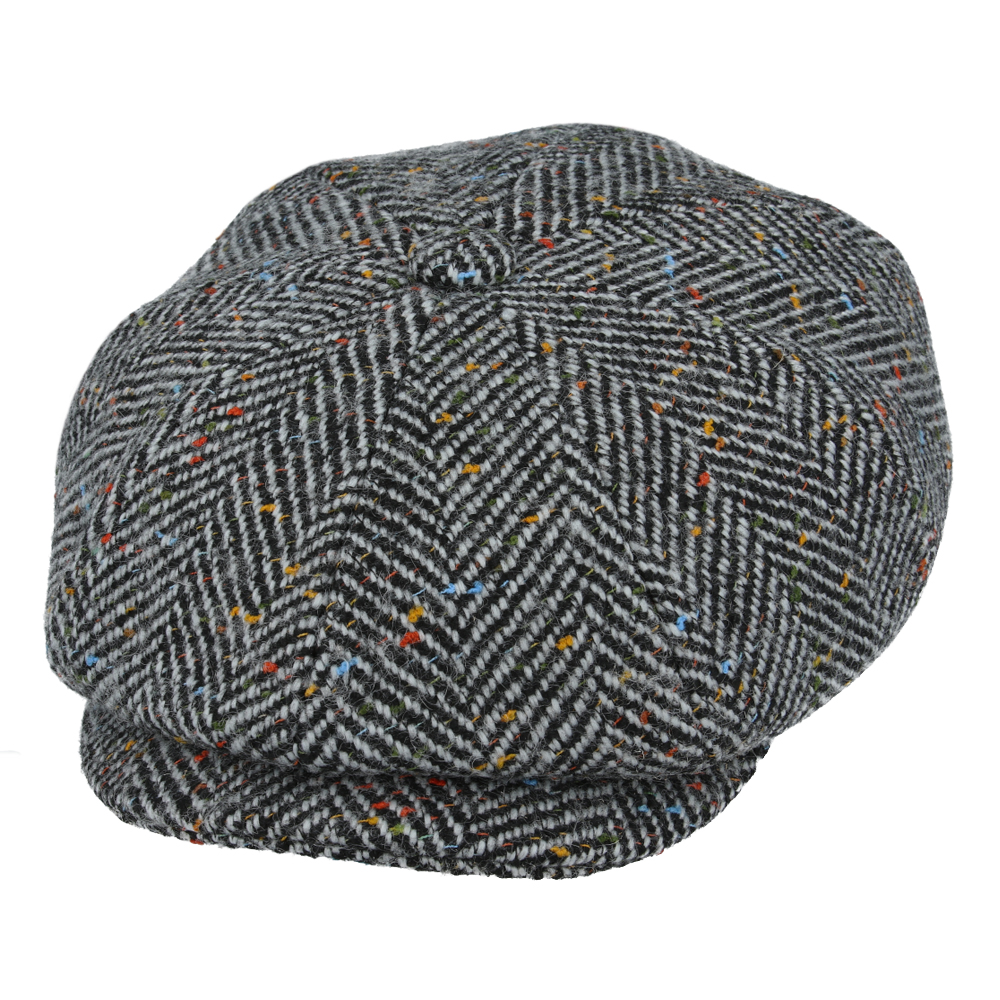 Maz Wool Tweed Herringbone 8 Panel Newsboy Cap – Grey