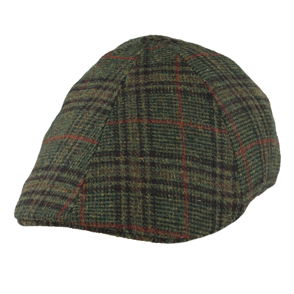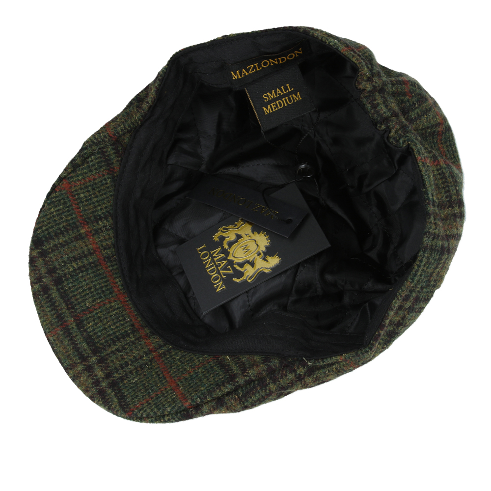Maz Six Panel Window check Herringbone Flat Cap – Green