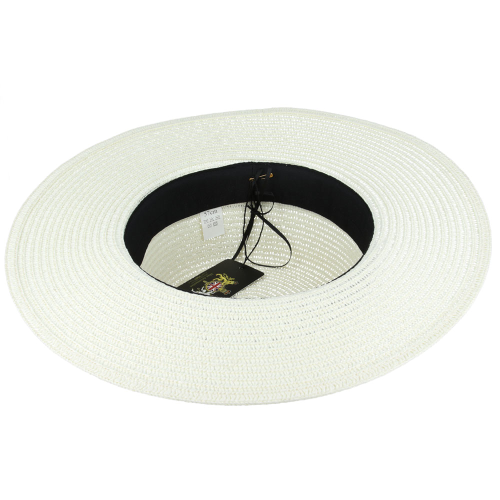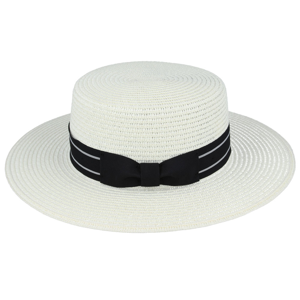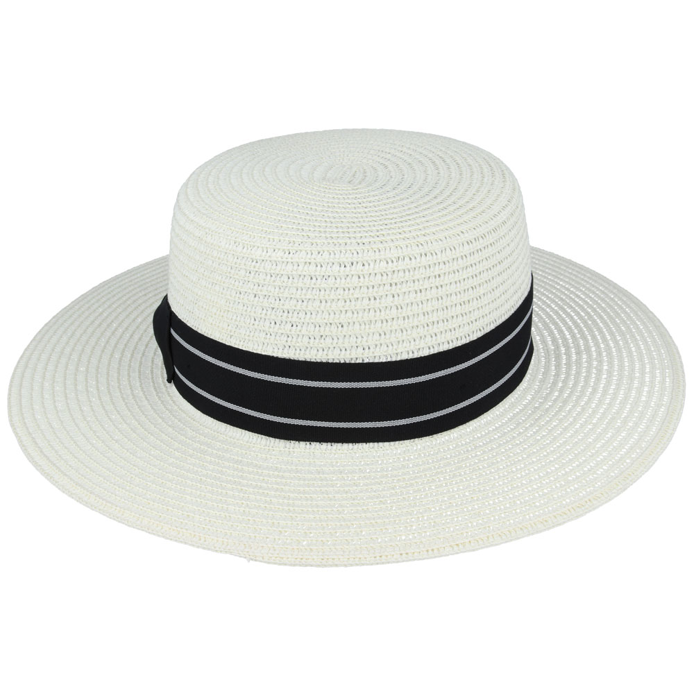 Summer Paper Straw Boater Hat Striped Band – Cream