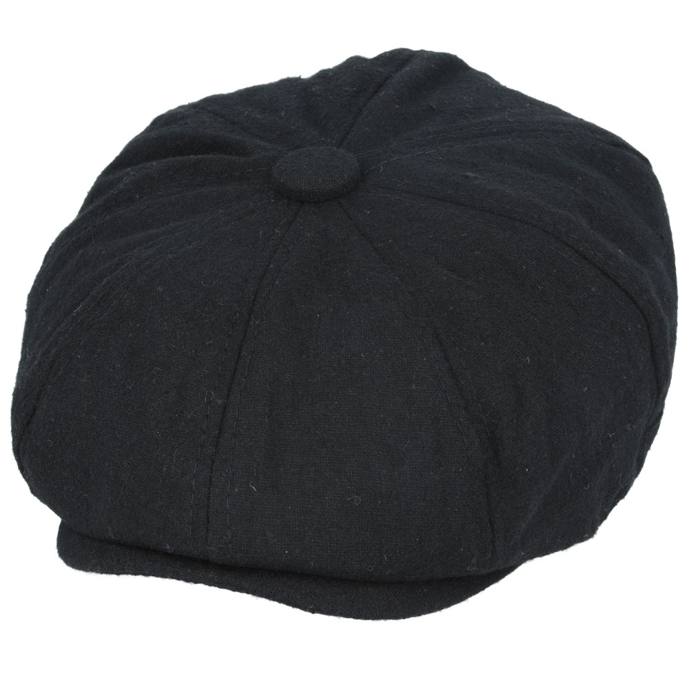 Maz Wool 8 Panel Newsboy Cap with Elastic at the Back – Black