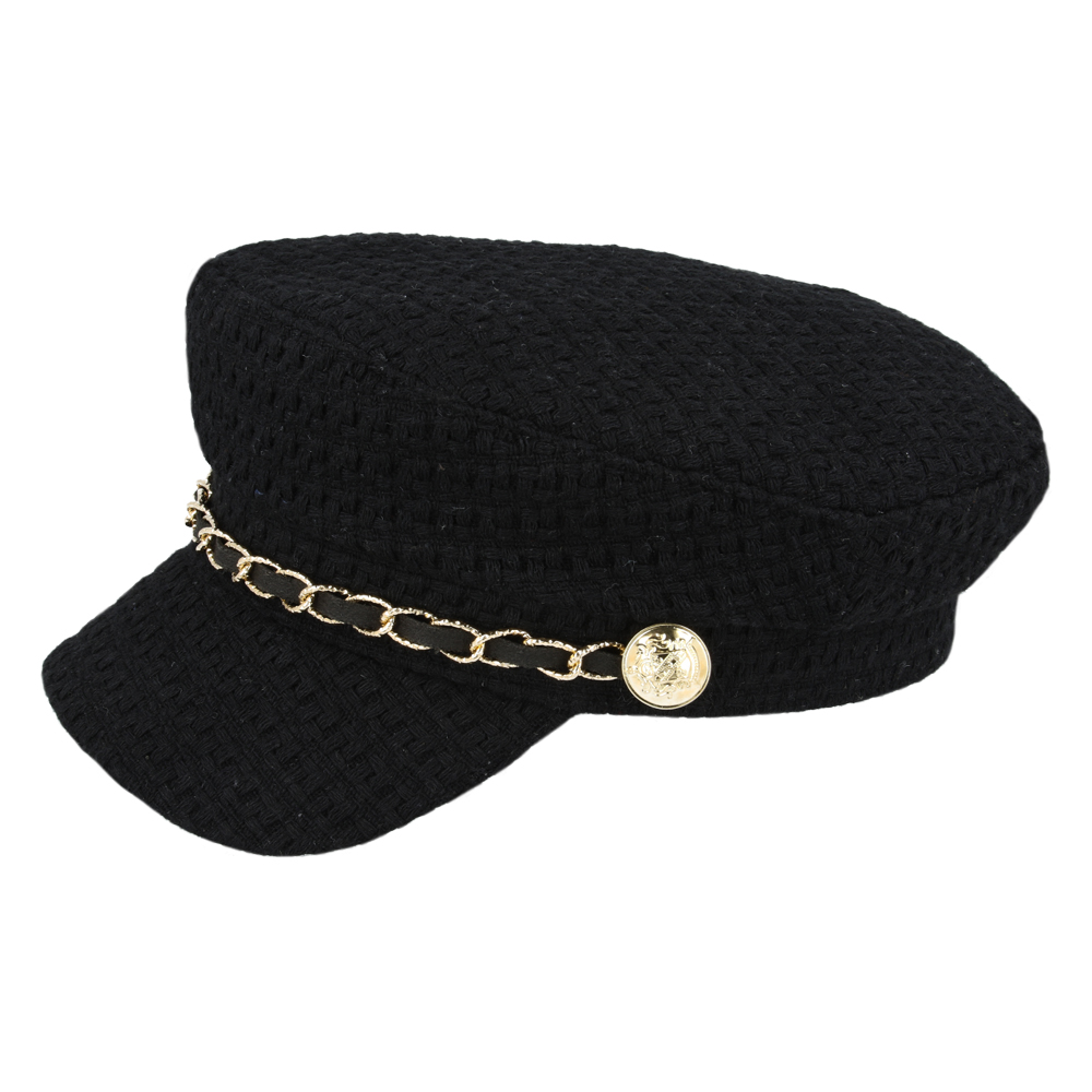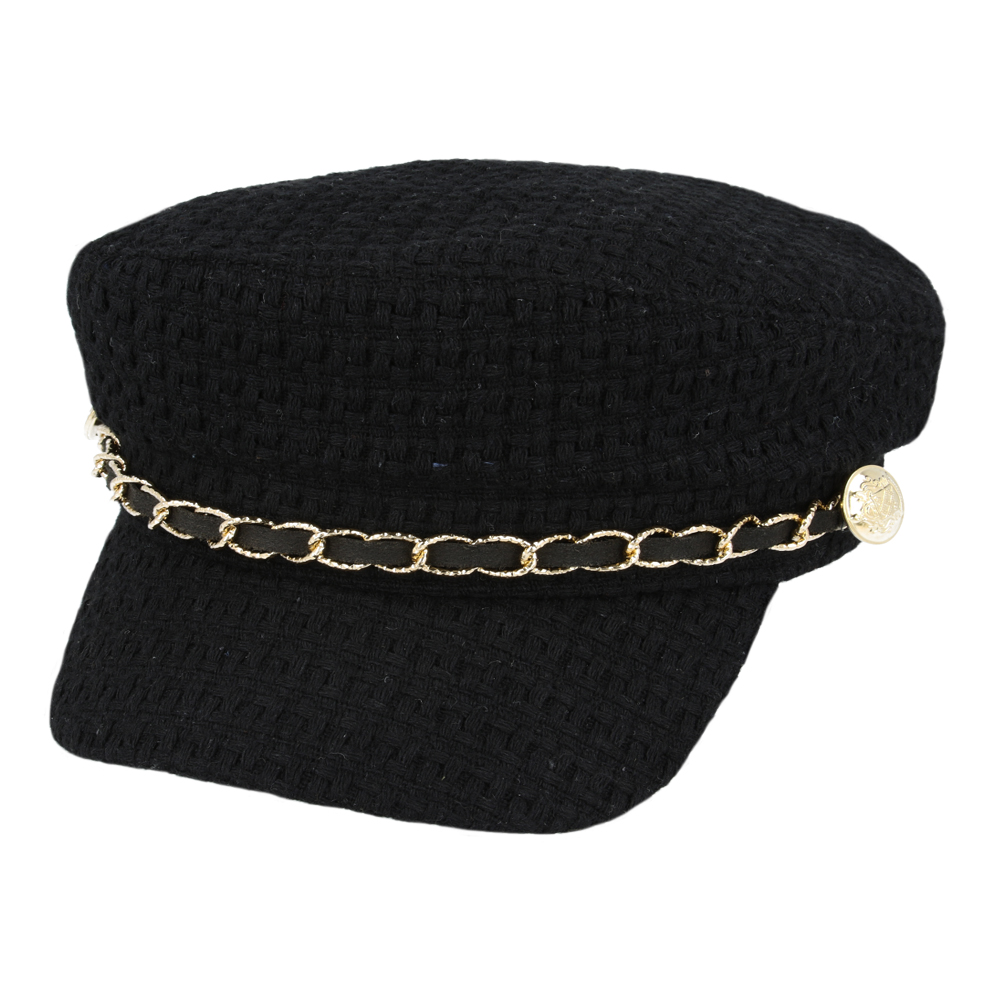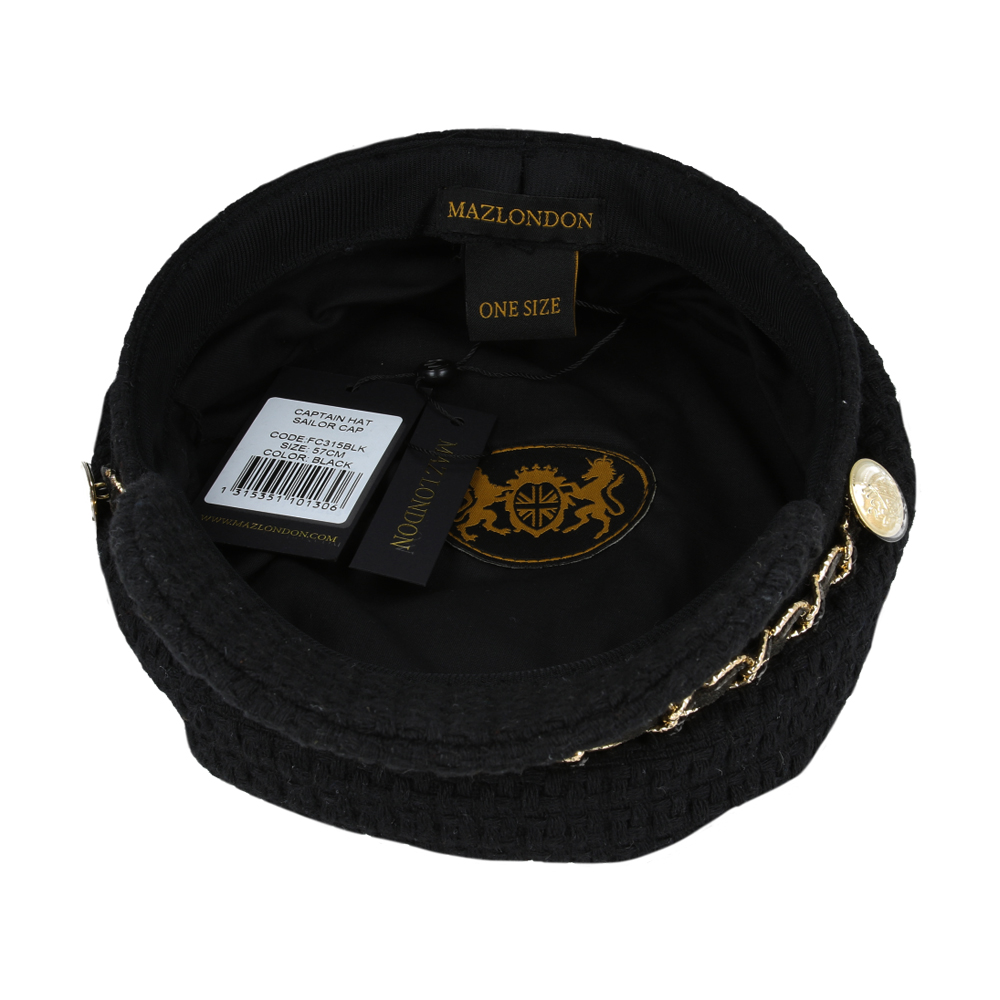 Maz Breton, Sailor, Captain Hat With Gold Chain & Button – Black