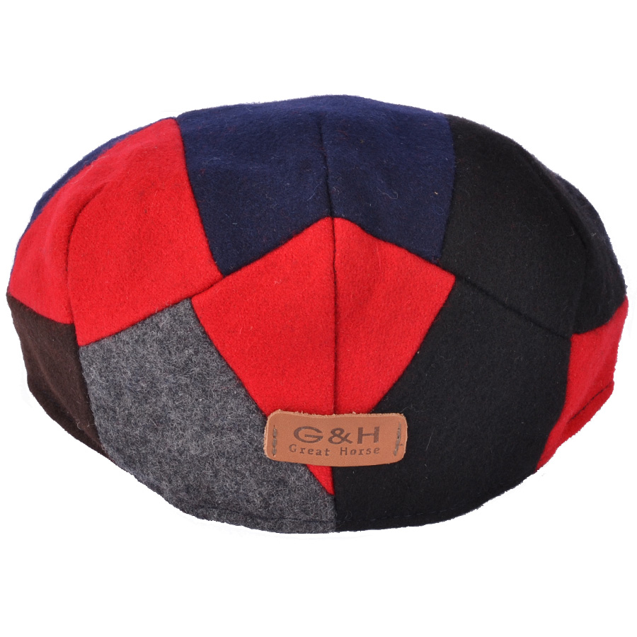 MULTI PATCH G&H FLAT CAP – red, navy, brown and black