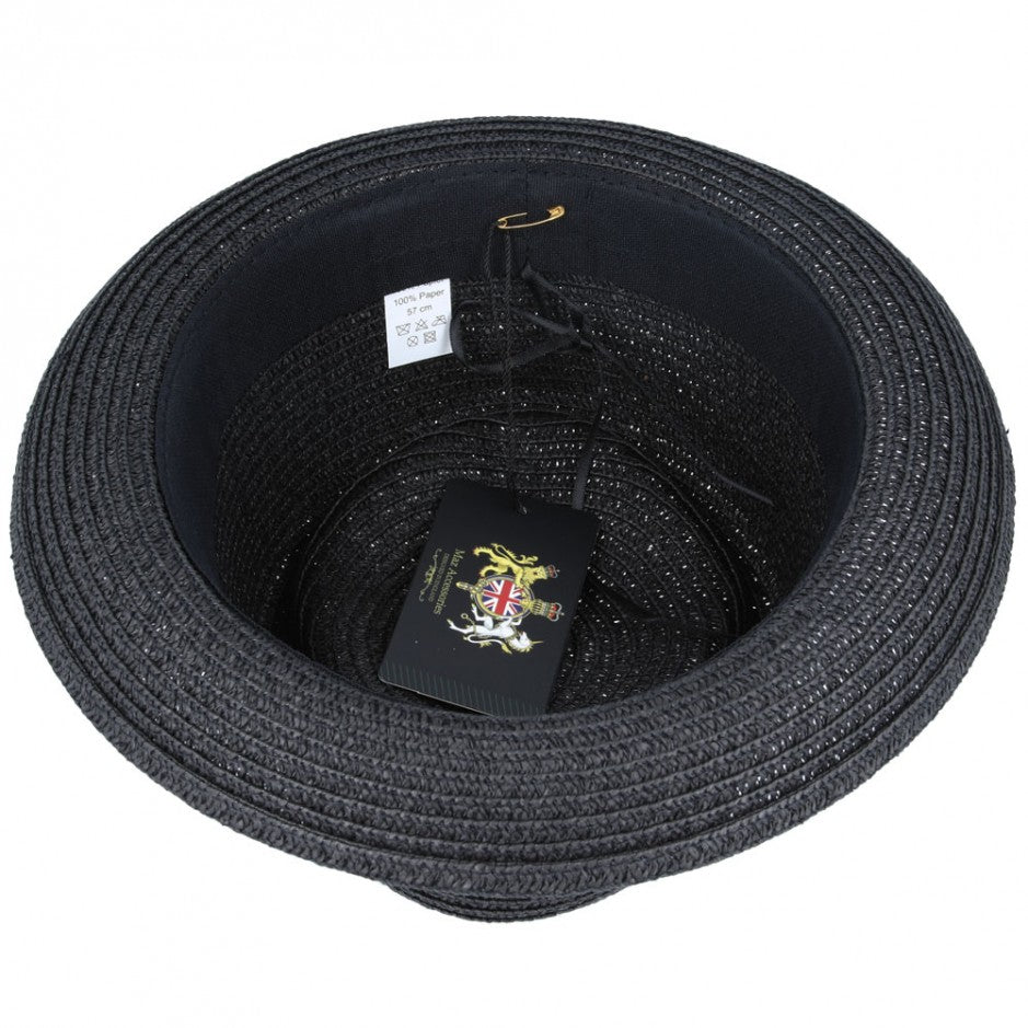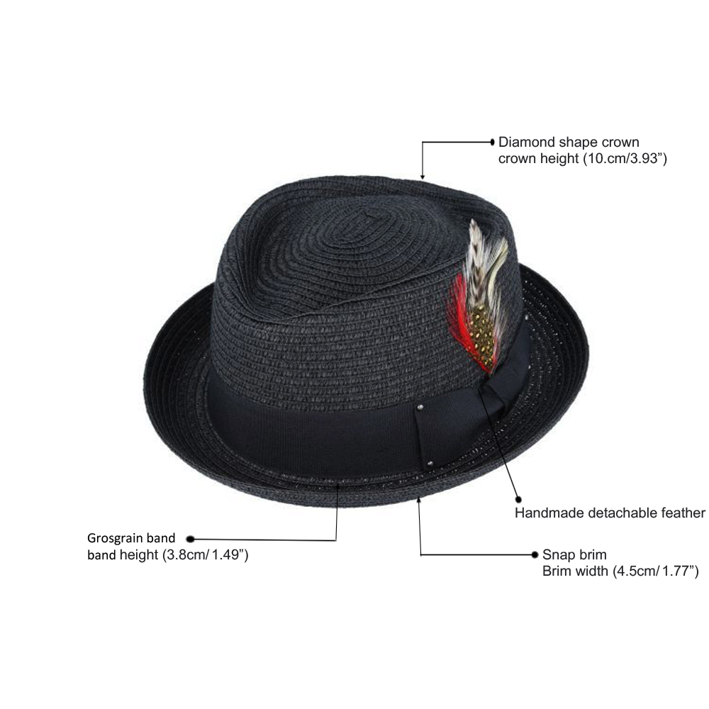 Summer Straw Diamond Crown Pork Pie Hat – Black