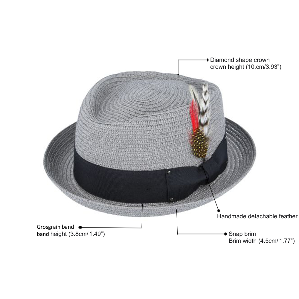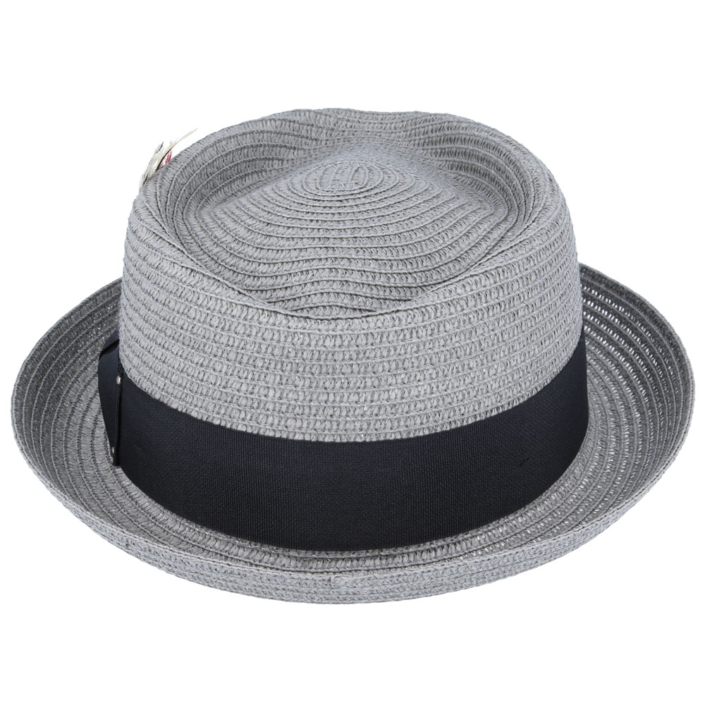 Summer Straw Diamond Crown Pork Pie Hat – Grey