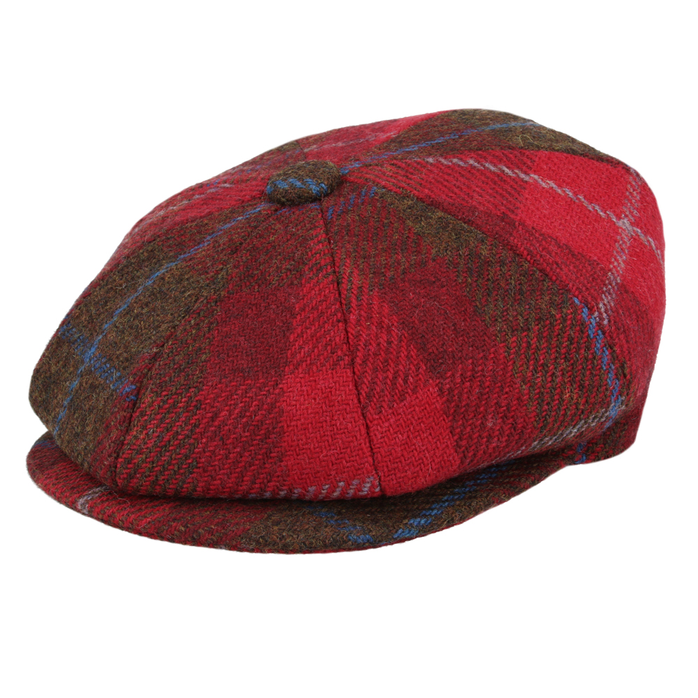 Tartan Tweed Wool 8 Panels Newsboy Cap – Red